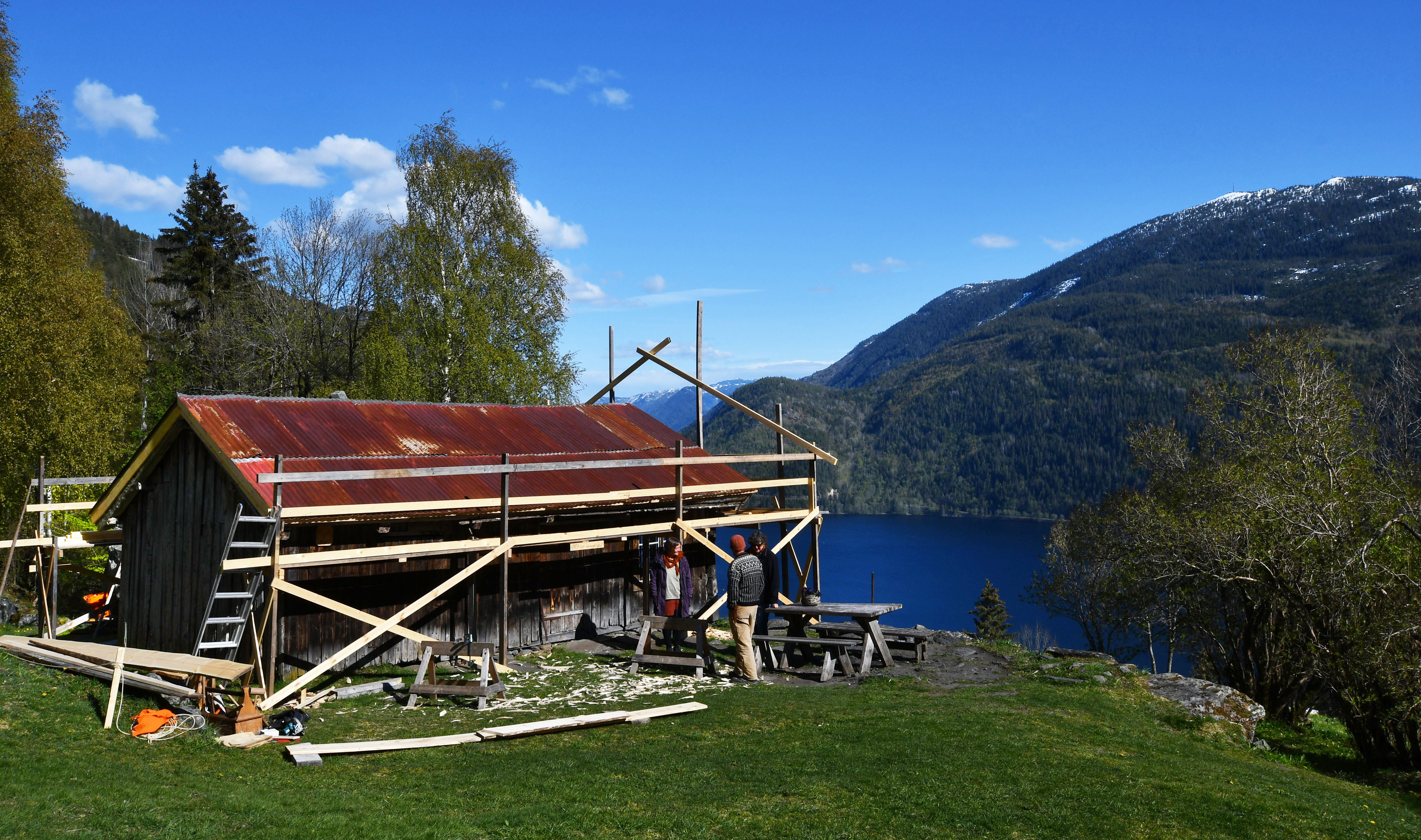 Dampskipsekspedisjonen på kaia i bygda Sæbø ved vakre Hjørundfjorden på Sunnmøre stod til forfall. Ørstad kommune, som eide bygningen, solgte den heldigvis til 10 ekte, bofaste bygningsvernere. Her er noen av bildene fra dette dugnadseventyret.