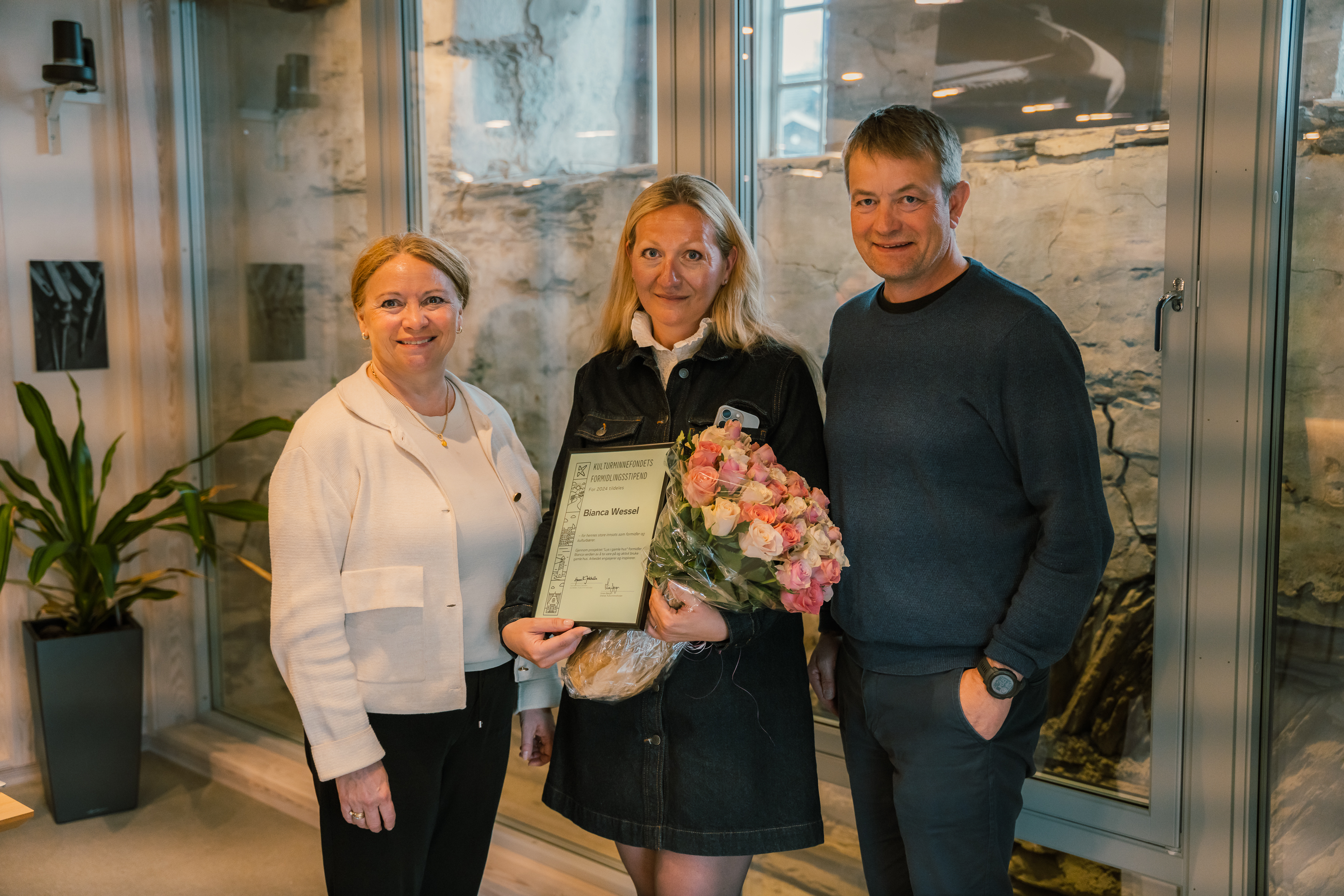 – Dette er helt fantastisk, sier styreleder Trude Knutzen Knagenhjelm etter å ha mottatt Miljøvernprisen for 2025 for byggingen av Urnes besøkssenter. Med prisen fra Stiftelsen UNI følger 15 millioner kroner.