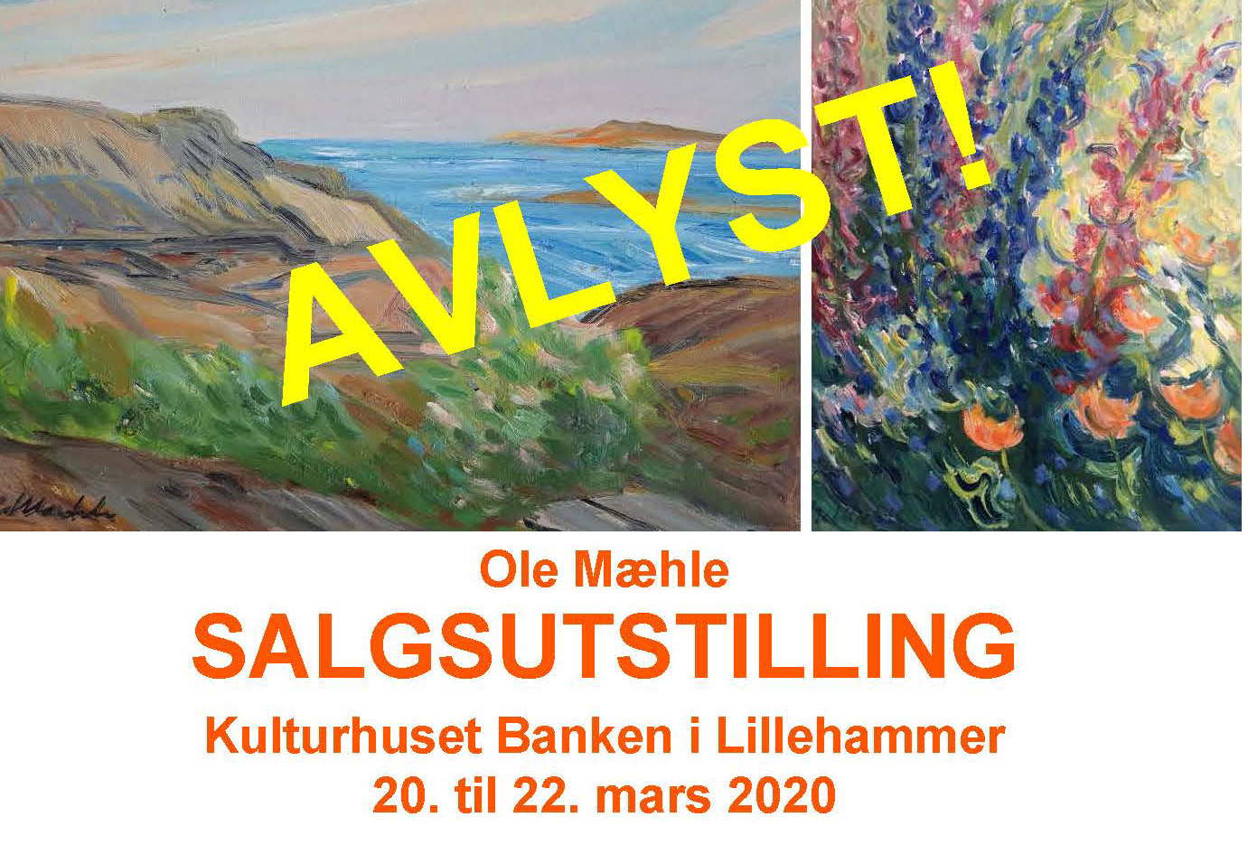 Grunnet den økende risikoen for koronasmitte i Norge har vi i dag avlyst salgsutstillingen til inntekt for kunstnerhjemmet Jorderik i Lillehammer 20. til 22. mars. Salget av Ole Mæhle-samlingen vil likevel bli gjennomført ved en senere anledning. Når og i hvilken form blir annonsert etter hvert.