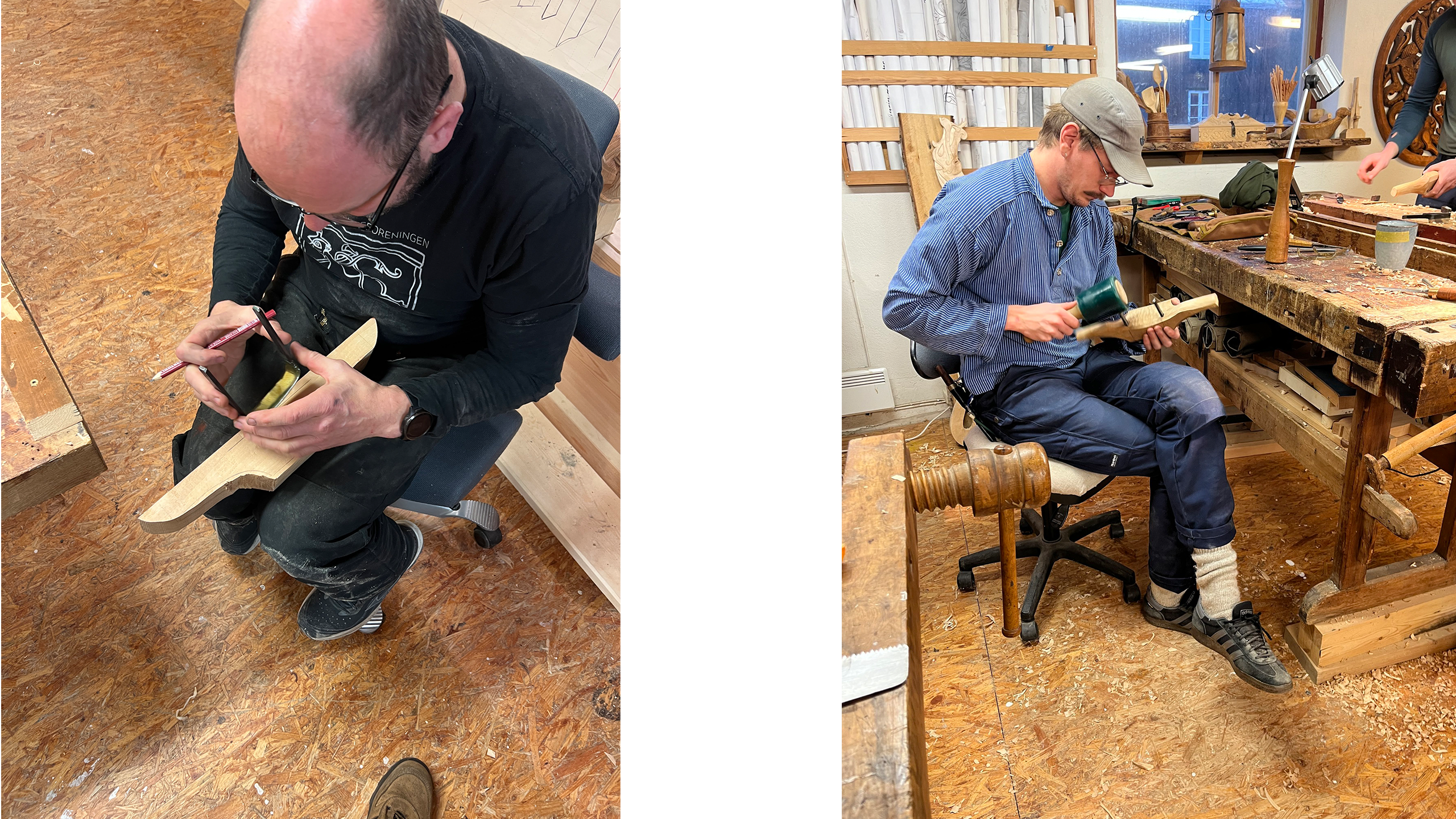Vert, treskjærer og museumshåndverker Kai Rune Johansen har vært involvert i rekonstruksjonen av Urnesportalen, og ledet helgens kurs for de tilreisende stipendmottakere. Blant de som tok turen var den unge tømreren Mathias Paulsen Sellevold fra Trondheim, som fikk Håndlags-stipend i 2024. Han har jobberfaring med tradisjonshåndverk, og har deltatt på flere kurs og dugnader i regi av Fortidsminneforeningen. Med en stor interesse for håndverk, kultur- og bygningshistorie legger Sellevold trykk på hvor viktig et godt miljø skal til for kunnskapsdeling.
