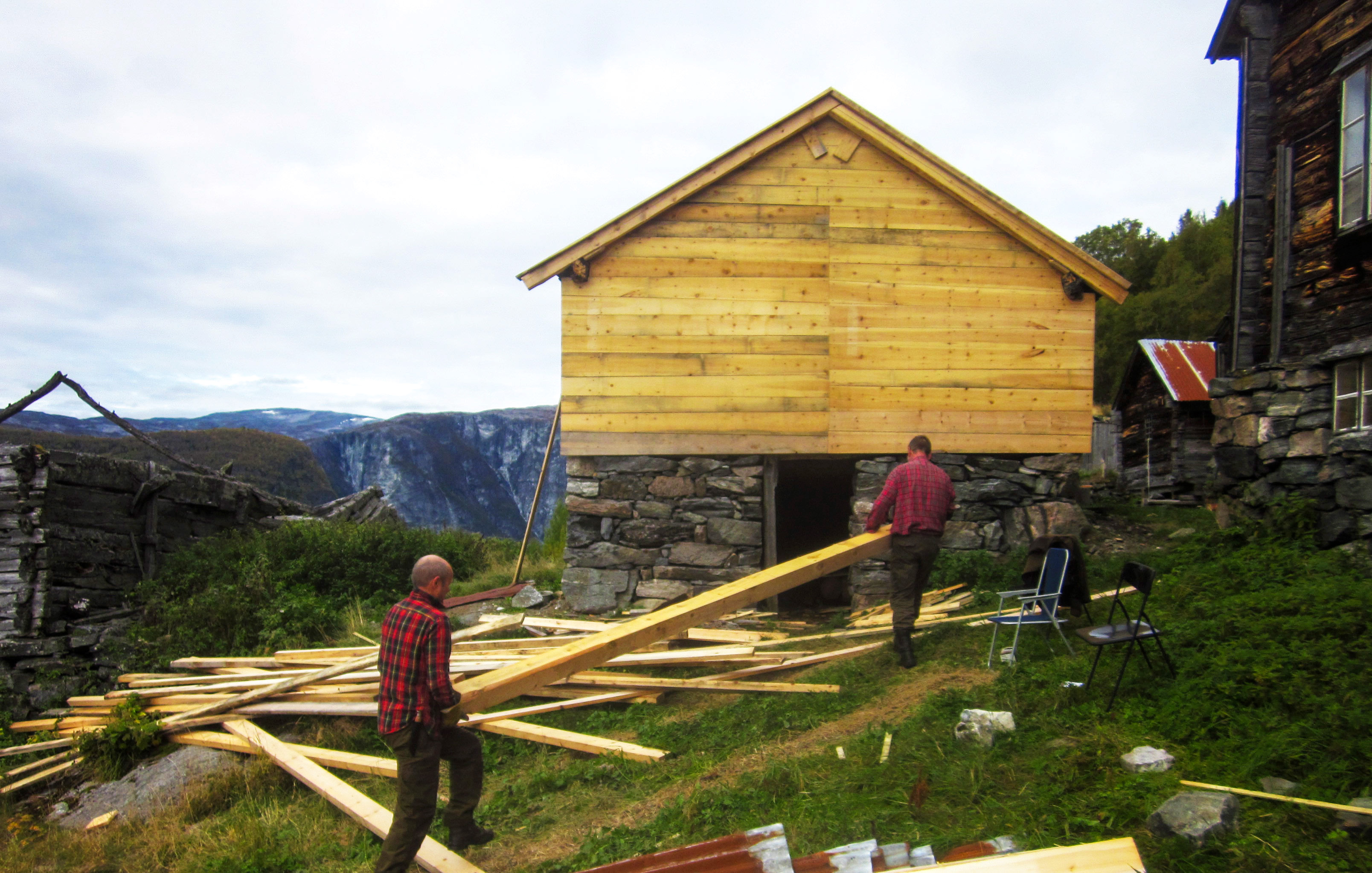 Rester av treverk i fjøset er av fylkeskommunen godkjent restaureringsverdig. Treverket er frakta ned til Nessane/Balestrand for restaurering hjå handverkar Arle Nyborg Christensen. Vestland fylkeskommune har bevilga midlar til restaurering. Grunnmur til fjøs er klargjort for oppsetjing av restaurert bygg. Arbeid med restaurering av siste verneprosjekt, fjøs, er under planleggjing.