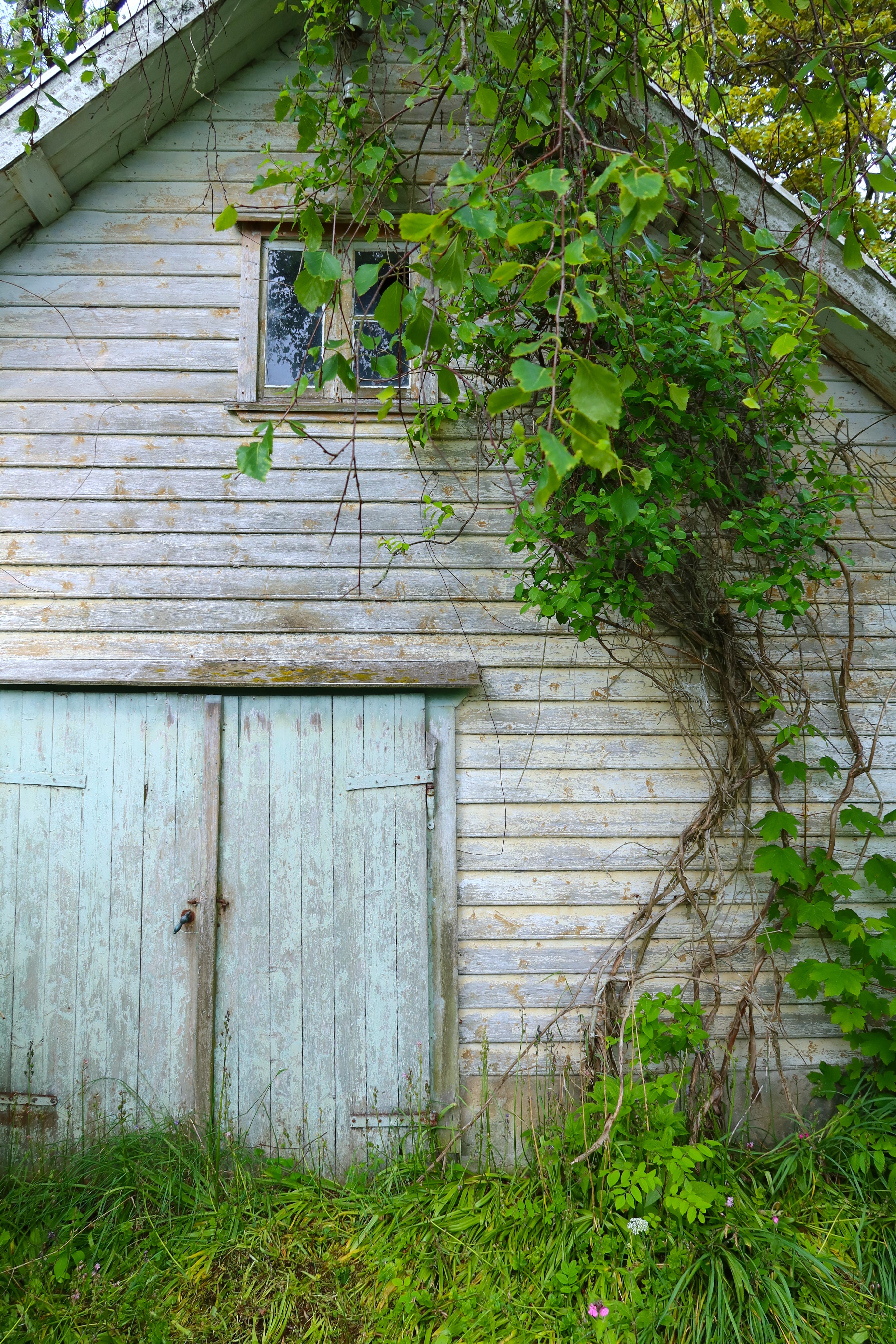 Innimellom måtte hun selvfølgelig også ta fatt i det som måtte gjøres. Hun fikk hjelp av slektninger til å få ordnet taket på vognskjulet, etter at hun ble lei av stadig å ligge der opp og reparere det verste. Også sjøhuset fikk nye vegger, mens det ble lagt nye gulvbord på låven. Der er det spor av nytt og gammelt, materialene bærer preg av gjenbruk. Den romslige bygningen er et grindbygg, utvidet med nye grinder med årene. En gang var det sauer, kyr, hest og høner her, men nå brukes ikke låven til noe, noen gamle sildetønner vitner om tidligere tiders aktivitet.