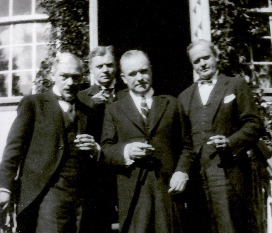Der og da, på en hagebenk i det som i dag er Stavern, blir brorskapet «Den grønne bænk» stiftet, med hurtig nedskrevet Grundlov med tre paragrafer, høytidelig signert av de fem: riksantikvar Harry Fett; arkeolog og senere konservator ved Stavanger Museum Anton W. Brøgger; journalist, redaktør i Tidens Tegn og politiker Rolf Thommessen; arkitekt Magnus Poulssen og universitetsstipendiat i kunsthistorie Carl W. Schnitler.
