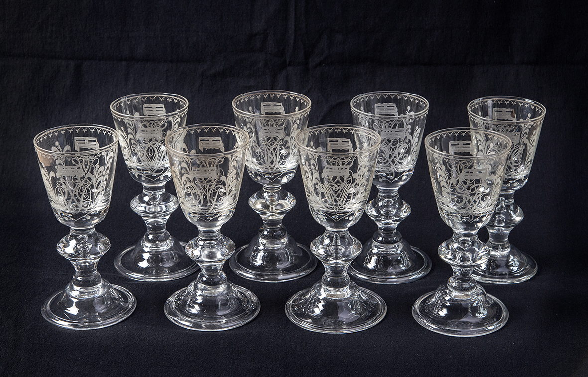 Ved siden av Den grønne benk, som fortsatt anger av fersk linoljemaling, står et vitrineskap. Inni er det en samling krystallglass, med initialer og en liten benk gravert inn, donert foreningen av den samme Carl Berner, Så kan man bare lure på hvem av «brødrene» som hvilte enden på akkurat denne benken en maidag for rundt hundre år siden, mens de skålte i akkurat disse glassene.