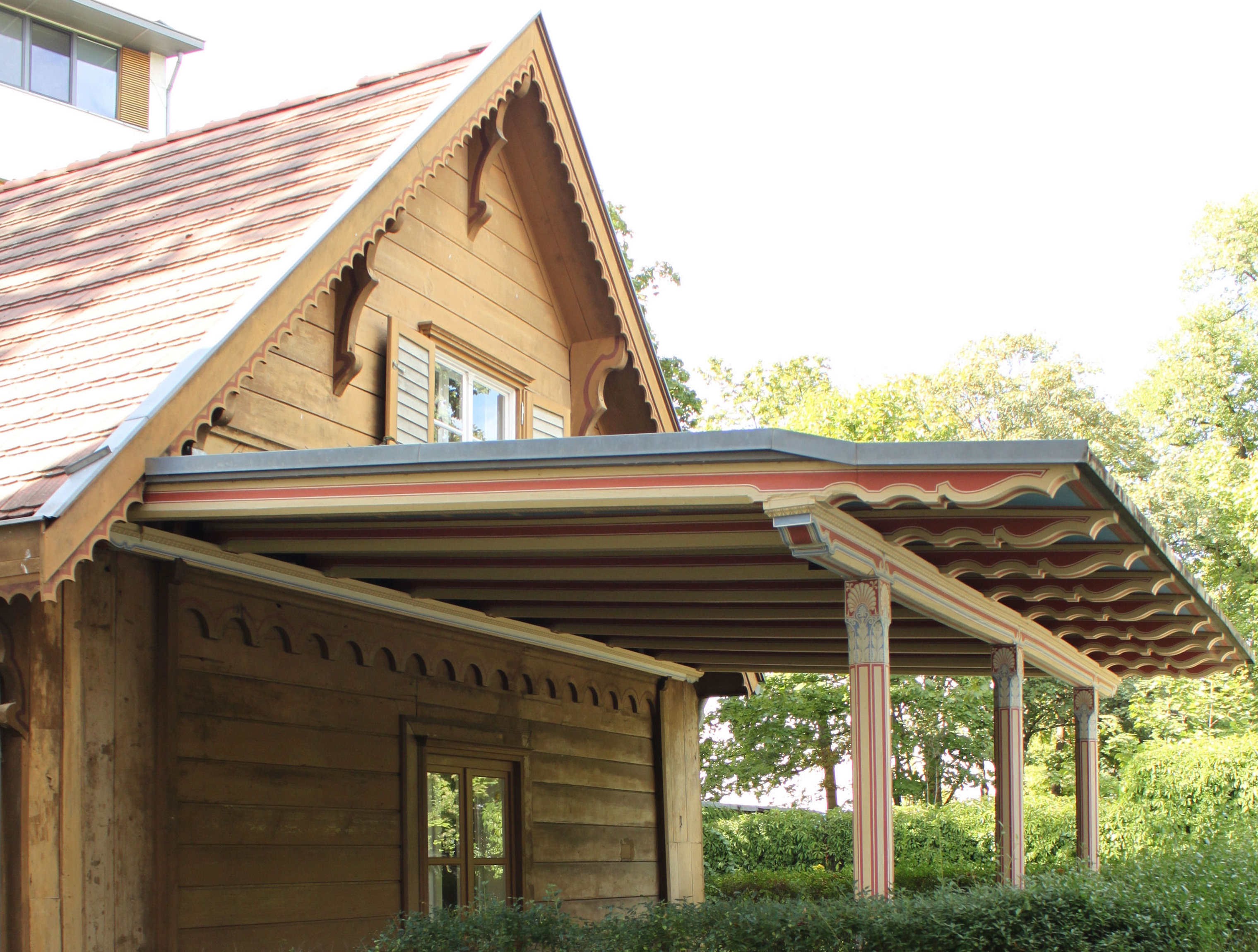 Der kan man på et lite område studere landets eldste hus i datidens nye trearkitektur stil i variert utforming og detaljering. Hele åtte av opprinnelig ni tidlige eksempler på den epokegjørende nye trearkitekturen ligger samlet her. Det er ikke mye sveitsisk å finne i utformingen utover karakteristiske brystninger med utsagete mønstre i vertikale bord: Takenes store utstikk og detaljering er heller italienske enn sveitsiske.