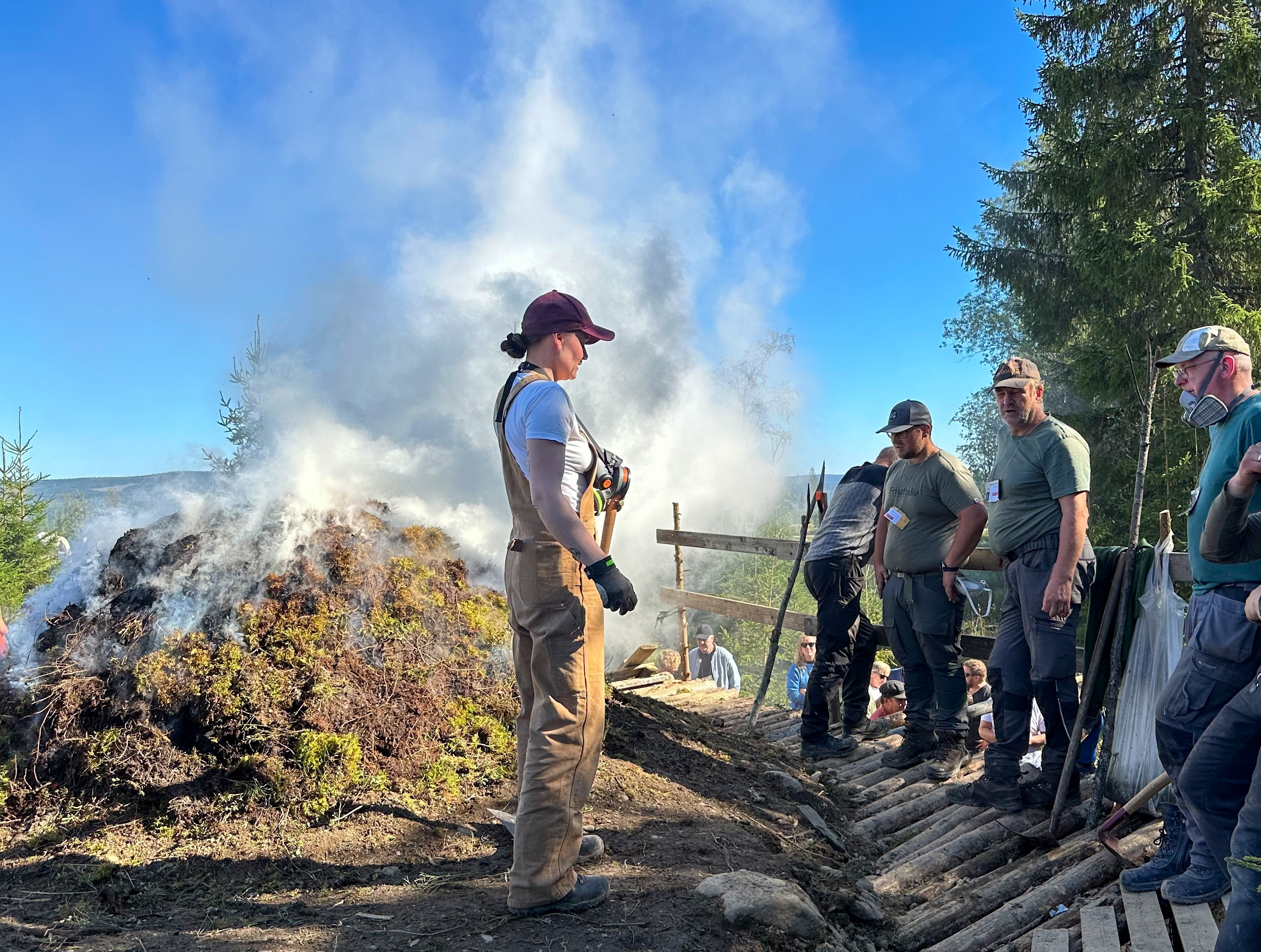 Den karakteristiske røykte lukten av tjære var ikke til å miste på Tranbybakken i Brumunddal 1. september – i hvert fall for det Nordiske tjærenettverket (NTN - Nordic Tar Network) som startet årets Tjærekonferanse med en liten stopp på milebrenning kurset som startet 29. august.