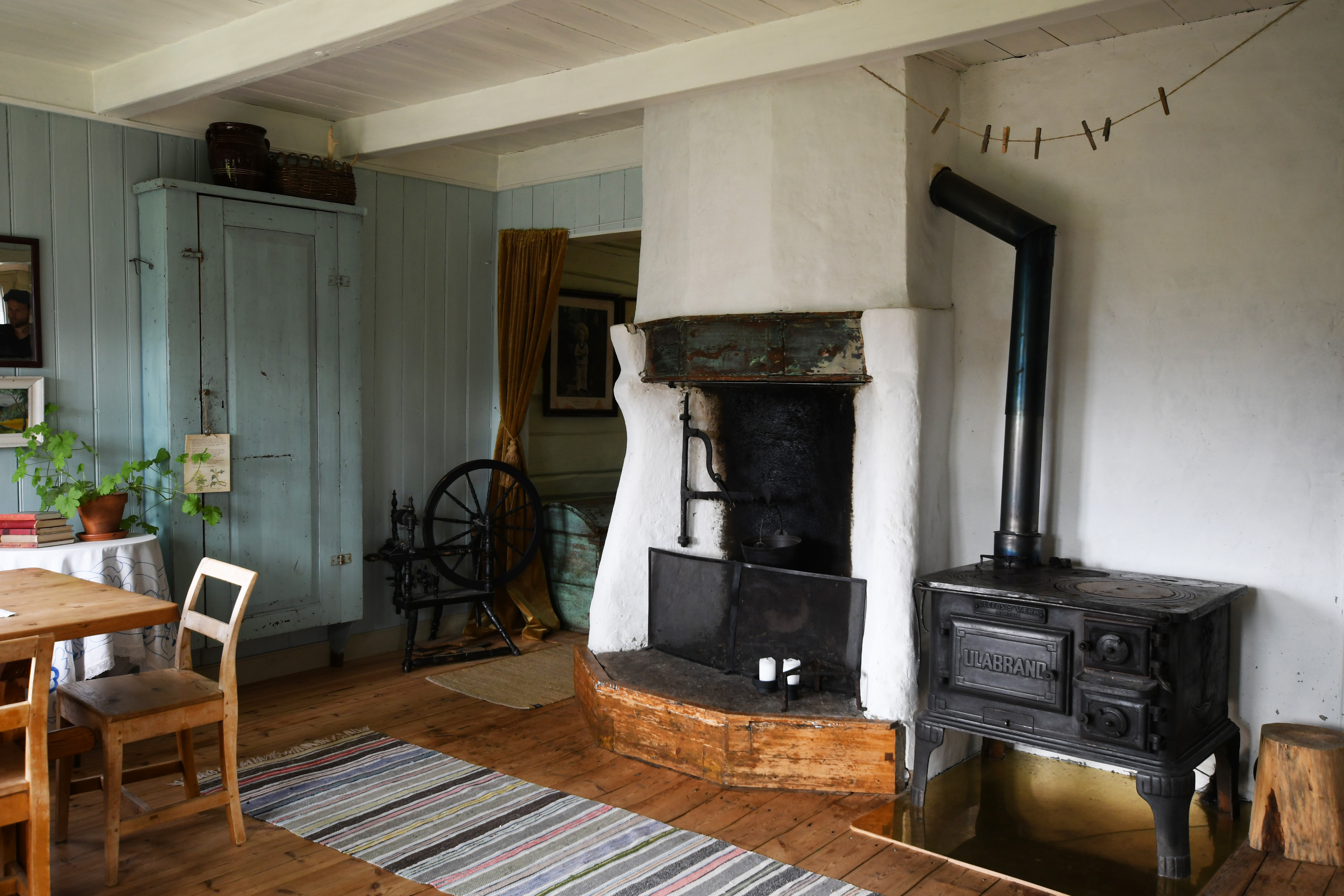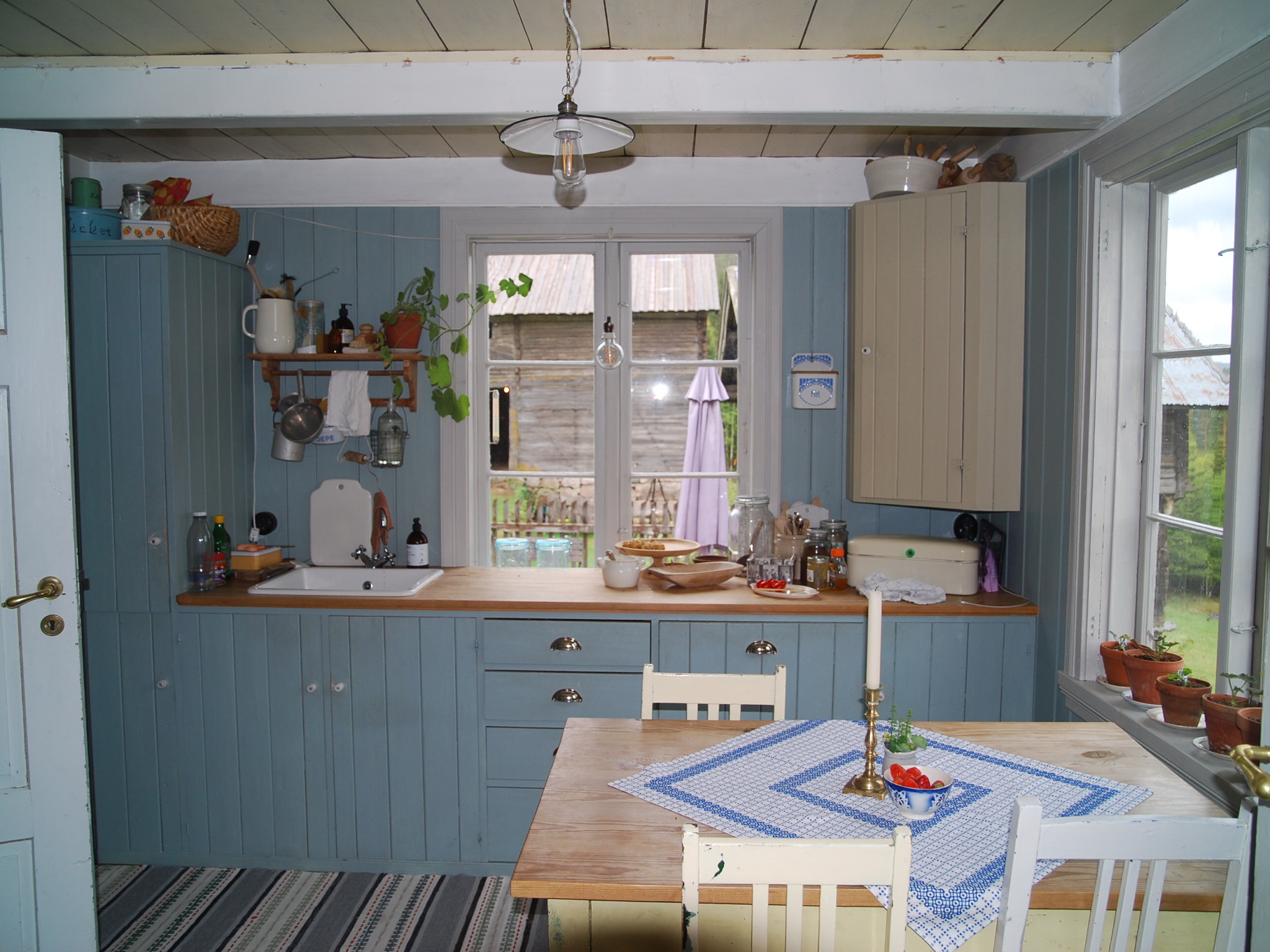 – Det er en frihet vi tok oss. Tre vegger er kledt. Spikerslagene stakk ut både på våningshuset og stabburet, så det har egentlig vært halvferdig her siden 1910. Etter hvert satte vi bislaget på igjen fordi det var demontert under oppussingen. Huset her ble satt opp av gårdbrukeren, som også var byggmester. Han hadde ei sag som stod ut på pynten her nede. I dag er det ikke mye igjen av den, men det hadde vært fryktelig moro å få den opp og i gang igjen. Man må jo drømme litt, smiler Thomas.
