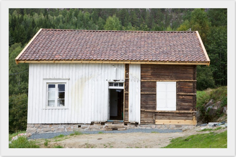 Det eldste fotoet de har av huset viser at det var umalt og solsvidd. Det hadde altså stått slik lenge. Derfor vil de ha det slik nå. På en av veggene var det opprinnelig hvitmalt kledning, samme utførelse som nå. De måtte ta av all kledningen for å bytte noen laftestokker, og spørsmålet var om de skulle sette den på igjen eller ikke. De lot være og har spart kledningen til et annet prosjekt.