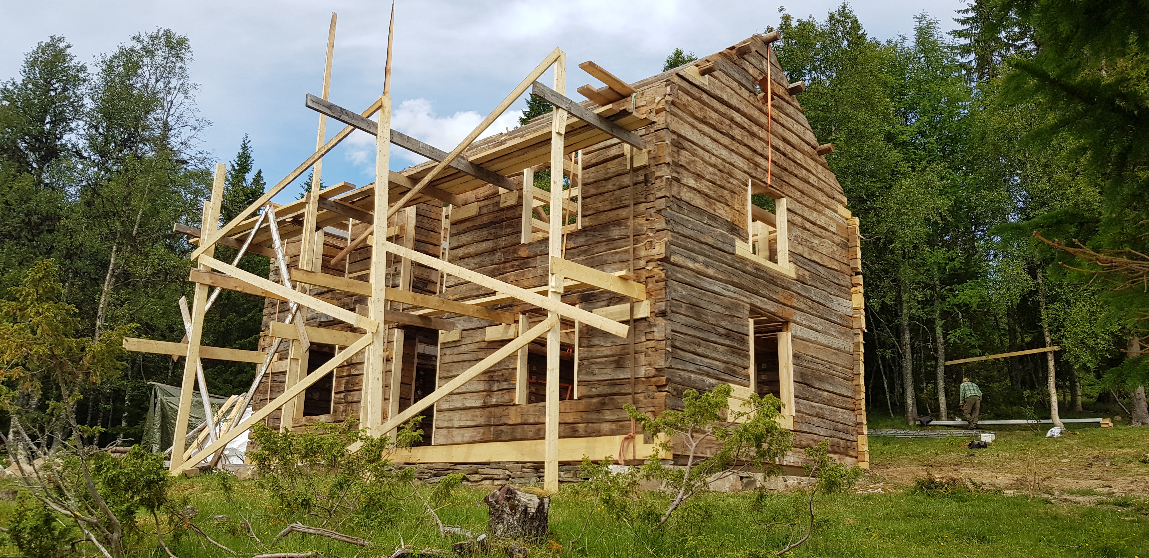 Tømmerkassen er nå igjen på plass på ny grunnmur. De originale materialene gjenbrukes i den grad det er mulig slik at bygget skal kunne ivaretas slik det var da Operasjon Rype ble gjennomført.