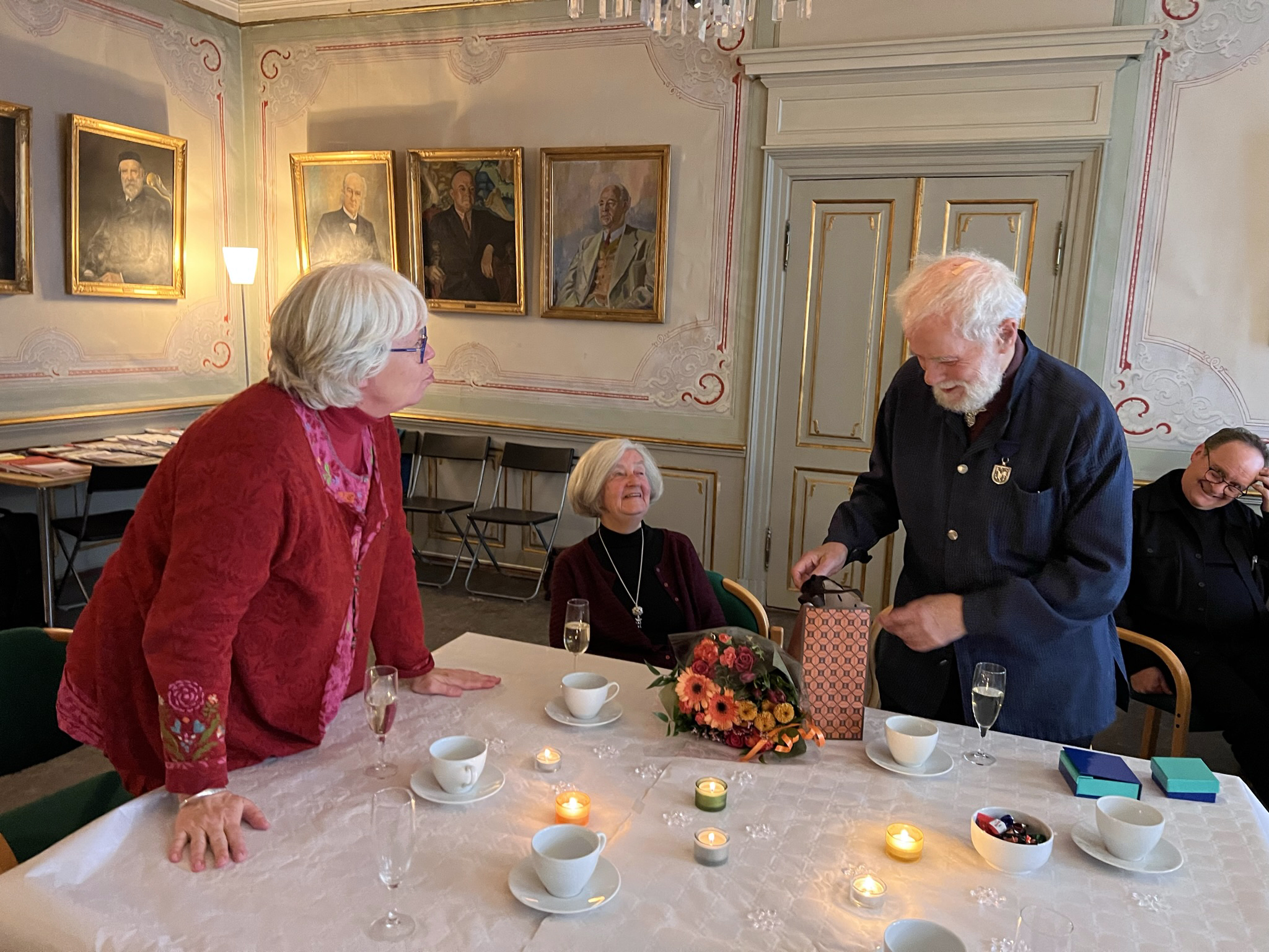 Stedet er Magistratgården, Fortidsminneforeningens hovedkontor i Kvadraturen i Oslo. Under lysekronen i Salen er det dekket til kaffe og kaker, og det er musserende i glassene. En liten gruppe av venner, kolleger og tidligere studenter er samlet for å feire en av norsk kulturminneverns store aktører.