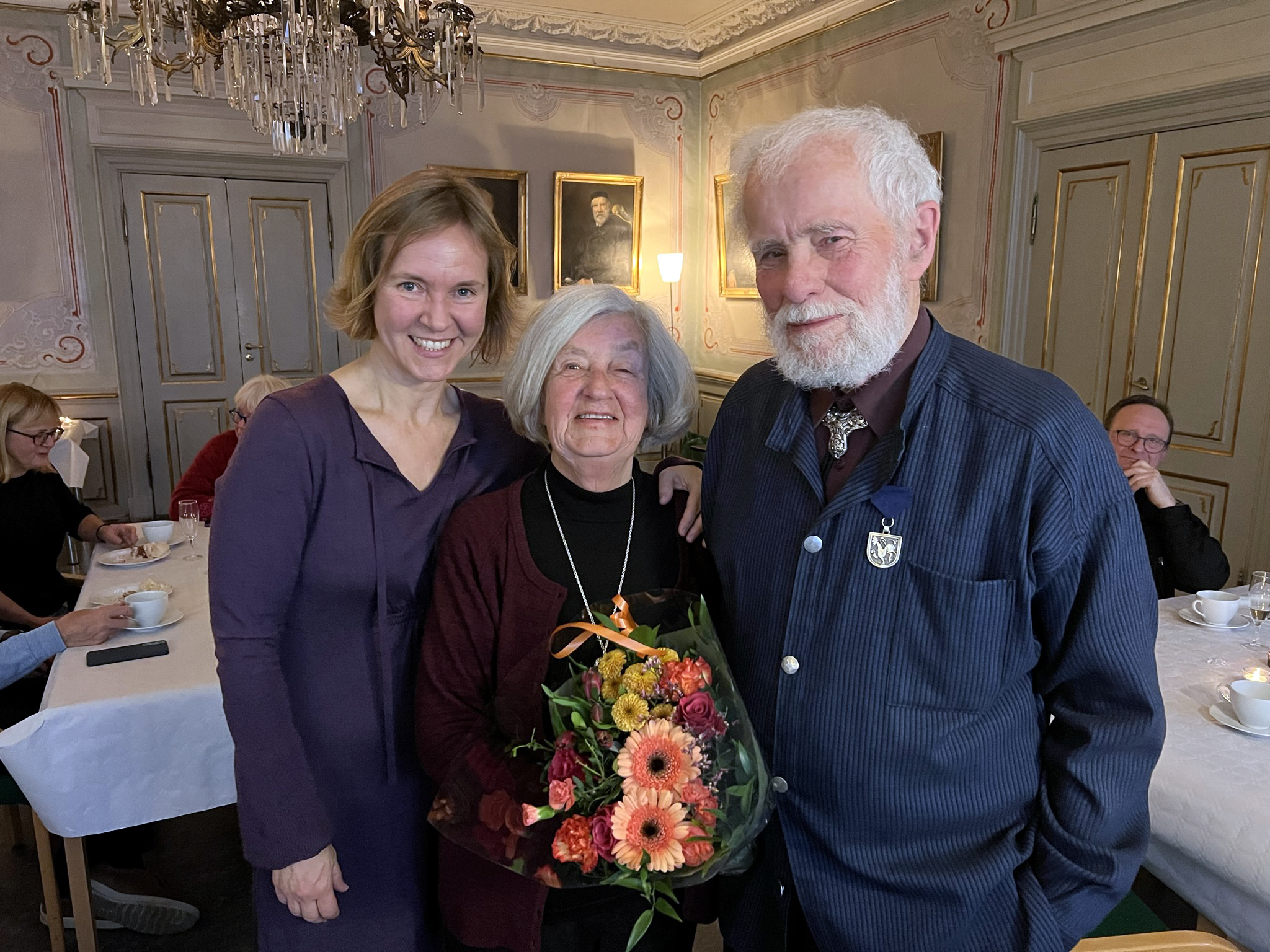 – Ja, det er litt sent, men medaljen kommer tidsnok! Det er viktig å hente frem de som har vært med så lenge og betydd så mye for kulturminnevernet. Den kollektive hukommelsen svekkes fort, og det er mange nye i dag som ikke kjenner til deg og det du har utrettet. Derfor er det så viktig å pusse blankt av de gamle heltene, sier Wilberg.