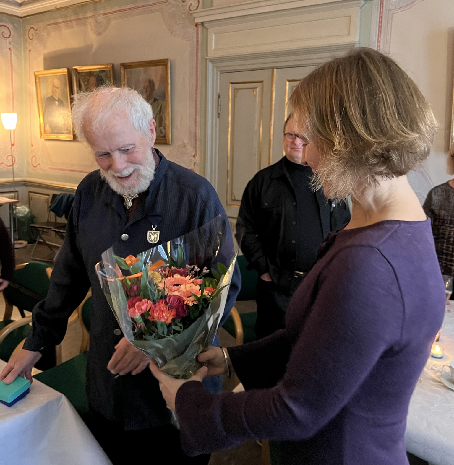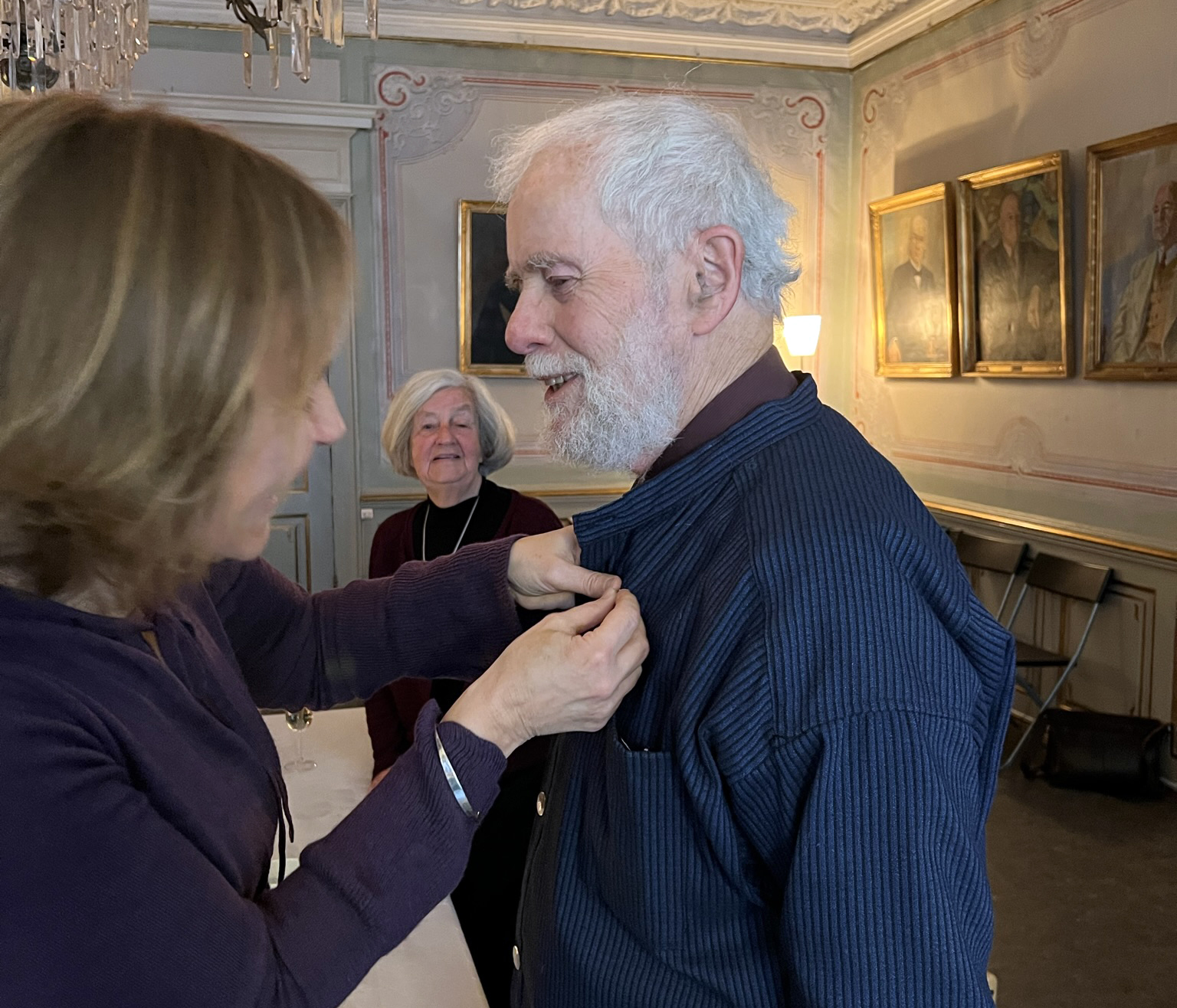 – Hansteens livslange virke for kulturminnevernet, som utøver, ideolog og formidler, gjør ham til en verdig mottaker av Urnesmedaljen, avslutter Hoem noen minutter senere og kan på vegne av Fortidsminneforeningens generalsekretær feste medaljen på skjortebrystet til en svært overrasket og synlig rørt mottaker.