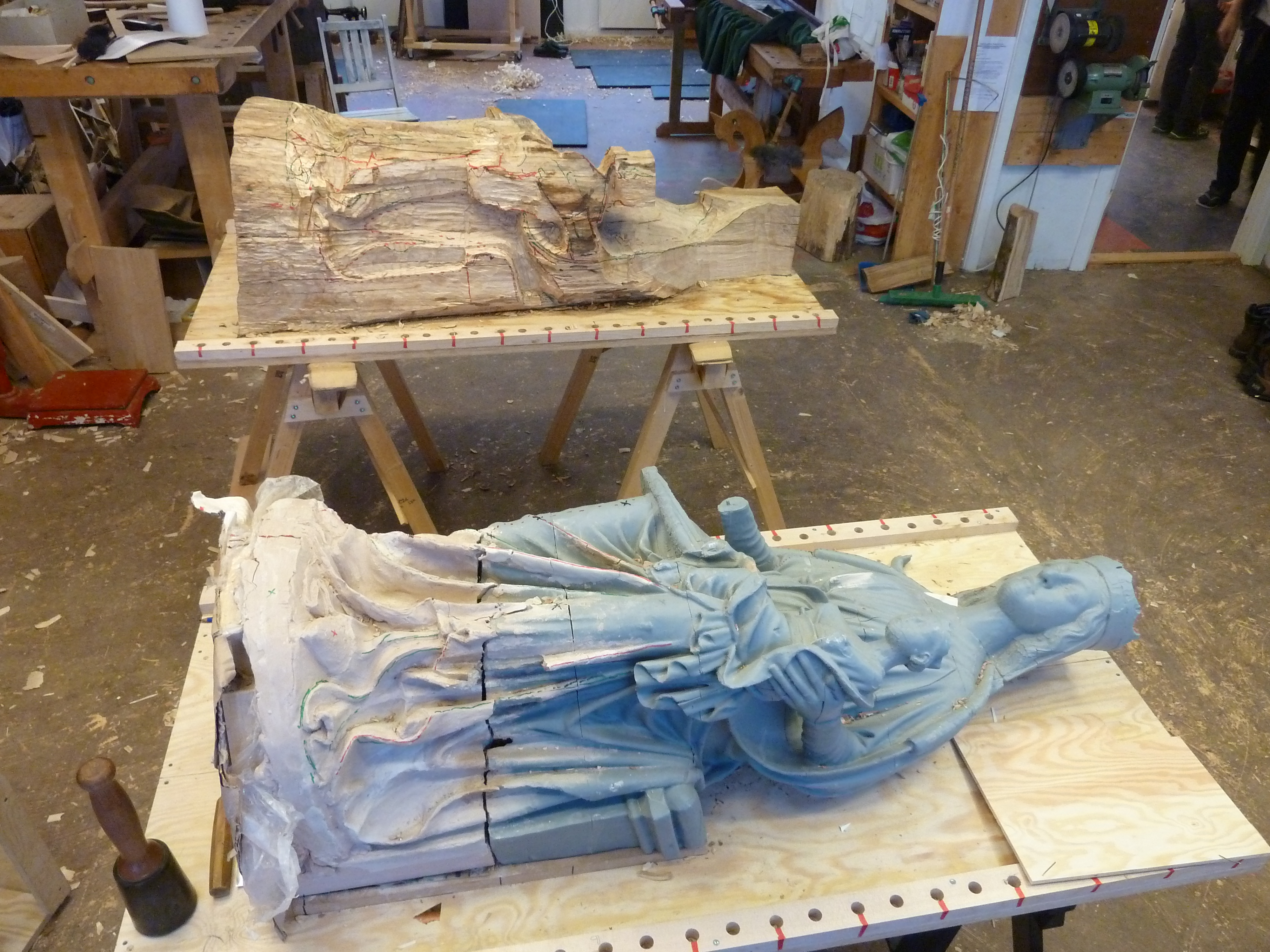 Mellom februar 2017 og oktober 2020 kunne gjenskapingsarbeidet gjennomførast, fyrst med skanning av originalen i Bergen med innleigd fagekspertise frå Vikingskipsmuseet, Kulturhistorisk Museum, Oslo, og deretter med treskjering og polykromering, altså fargesetting utført av Trekjærer-verkstedet AS.