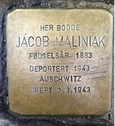 Mammas foreldre Jac og Mathilde Maliniak ble deportert og drept i Auschwitz i februar 1943. Mamma flyktet til Sverige og overlevde. I 2014 ble det lagt ned snuble-steiner for Jac og Mathilde på hjørnet utenfor Elgeseter gate 30B. Jeg var til stede da de ble lagt ned, det var veldig sterkt. […] Uansett: Jeg håper at den sterke historien om Jac og Mathilde Maliniak vil følge med historien til den vakre Jugenddronninga! Vennlig hilsen Jac og Mathildes datter-datter Liv Daasvatn, Oslo»