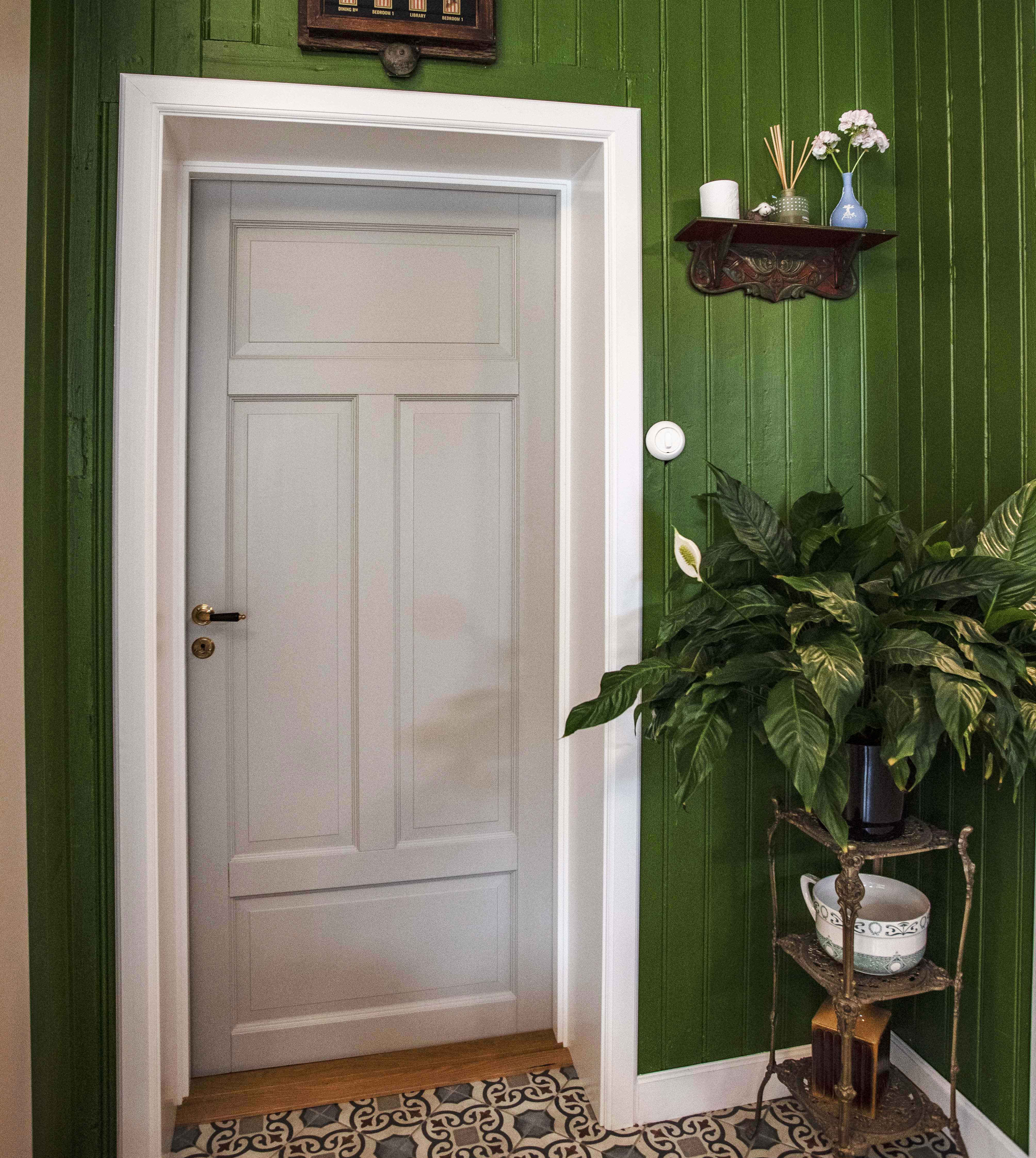 Da vi begynte med renoveringen oppe, kom det frem den originale perlestaffpanelen under de gamle koreaplatene. Selv om den noen steder er herjet og man kan tydelig se spor etter nye spikerslag og kutt, er de en del av huset. Selv omrisset etter tjenestepikens vask dukket frem i det som nå er en gang. En fellesnevner for alle rom som har blitt tatt vare på er takene. De er alle reparert etter antikvariske prinsipper, enten det er et strukket lerrettak eller eikeplater.