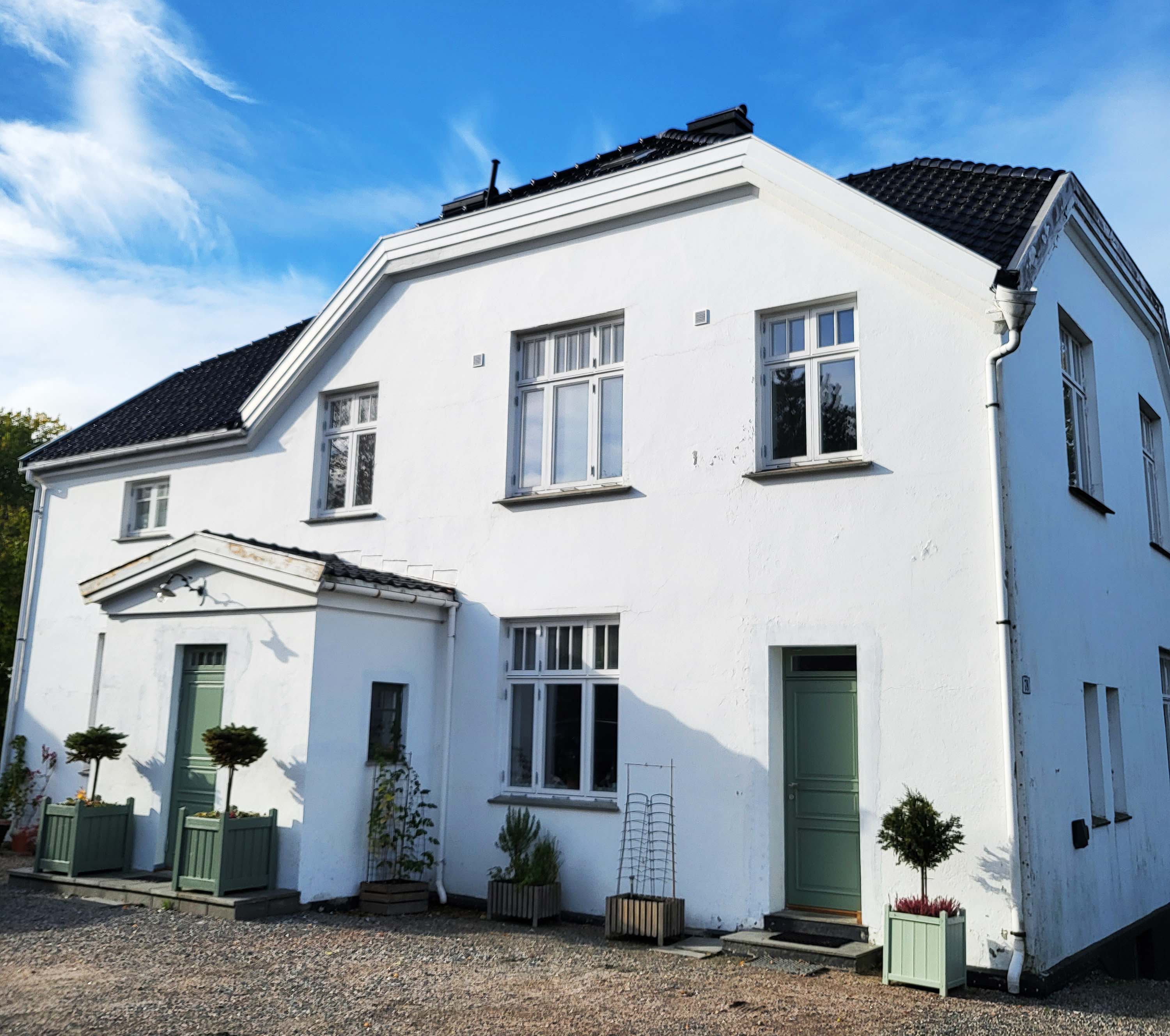 Vinduene ble dermed erstattet av kopier av de originale på hovedhuset, samt nye dører i samme formspråk funnet på arkitekttegningene fra byggeåret. Alt ble produsert av et lokalt snekkerfirma drevet av to brødre. Teakdøren får nytt liv og kommer til å bli inngangsdøren til vårt nye uthus. Den gamle stallen og grisebingen, garasjen og drengeleiligheten skal etter planen bli konvertert til noe helt annet.
