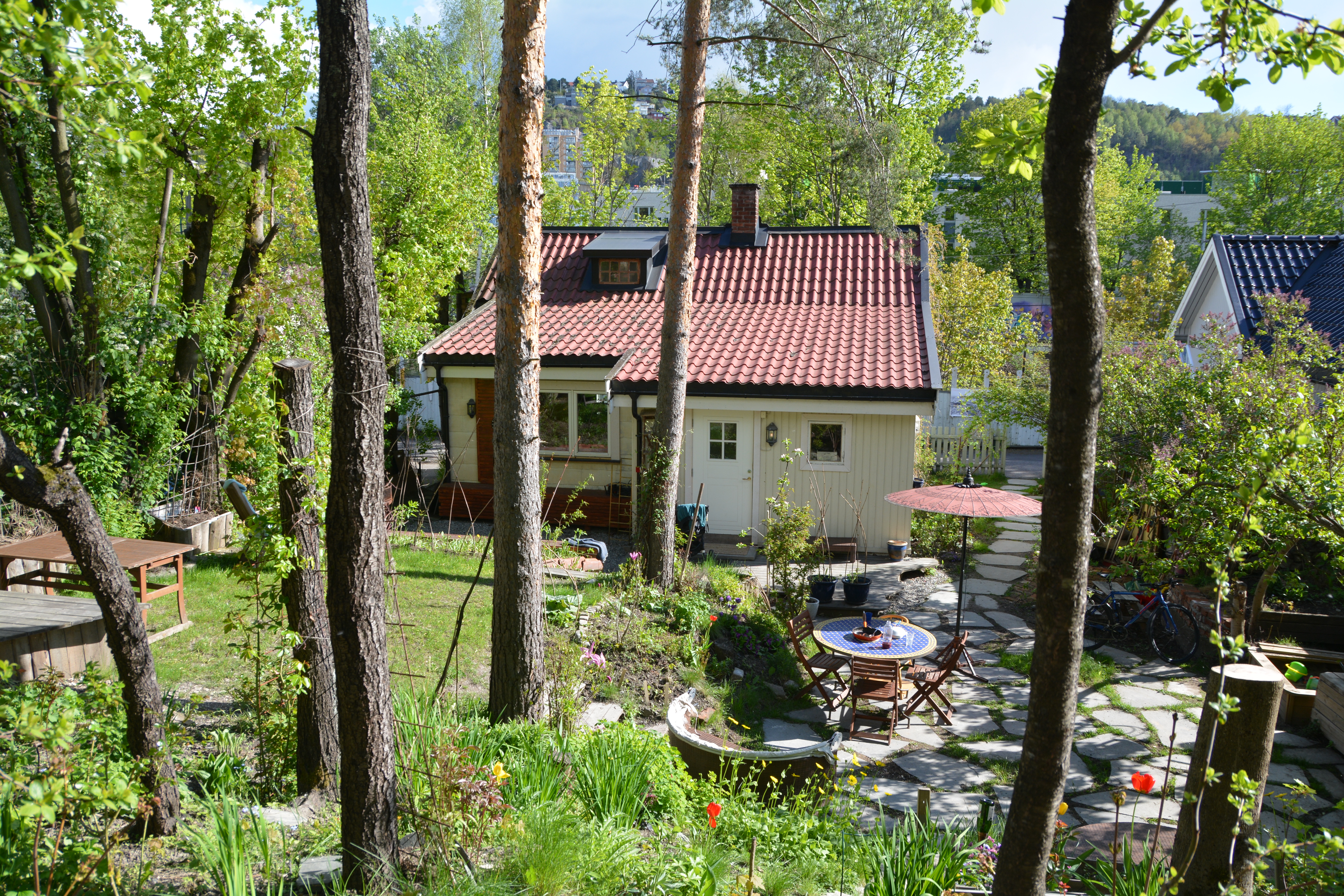 Dette er et særegent sted, landlig, men samtidig veldig urbant. Boligområdet ligger halvannen kilometer fra Oslo Sentralstasjon, mellom to travle jernbanespor, Gjøvikbanen og Hovedbanen. Fra hagene hører du stadig togene suse forbi like bak vegetasjon, plankegjerder og støyskjerming.