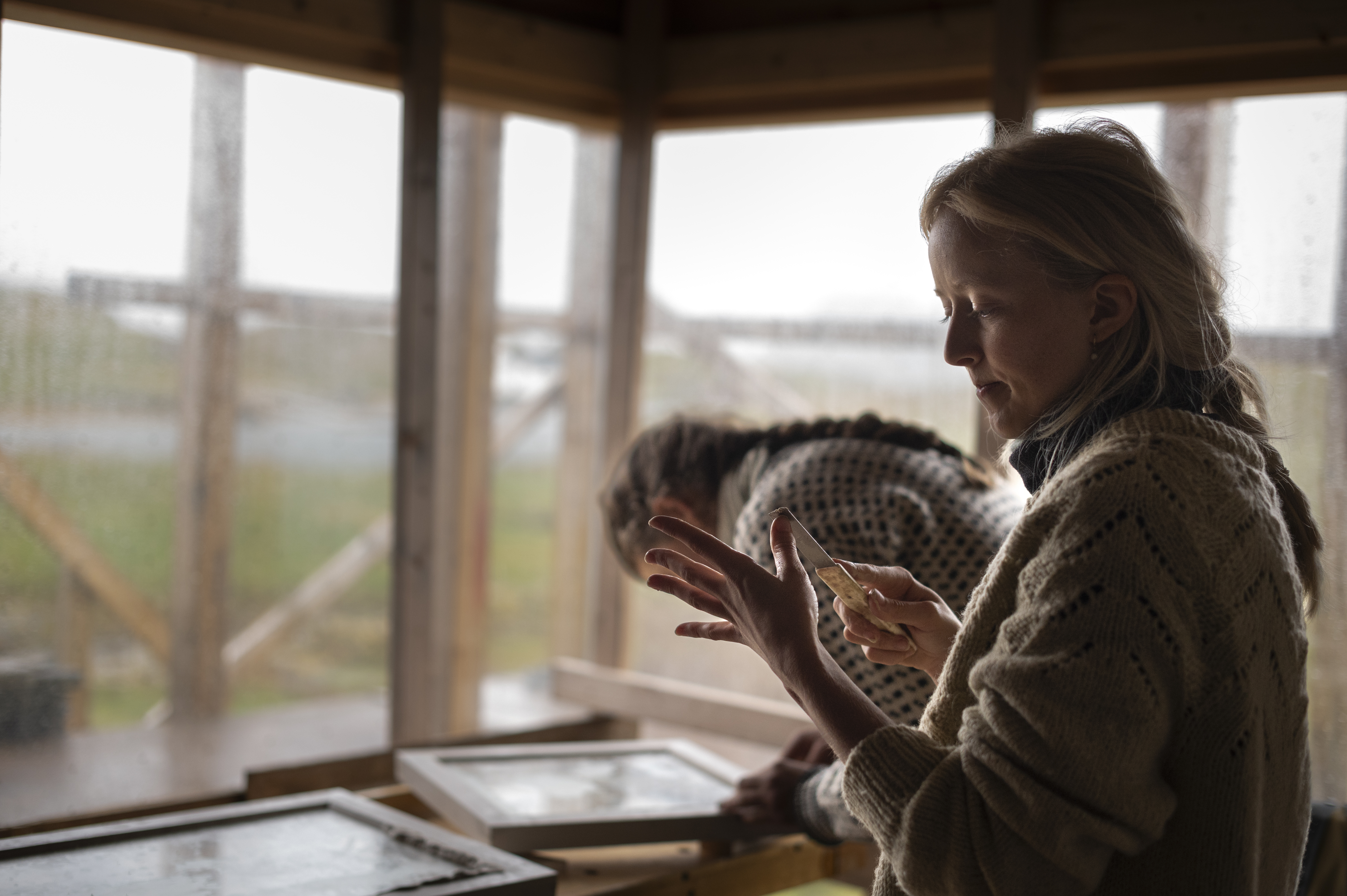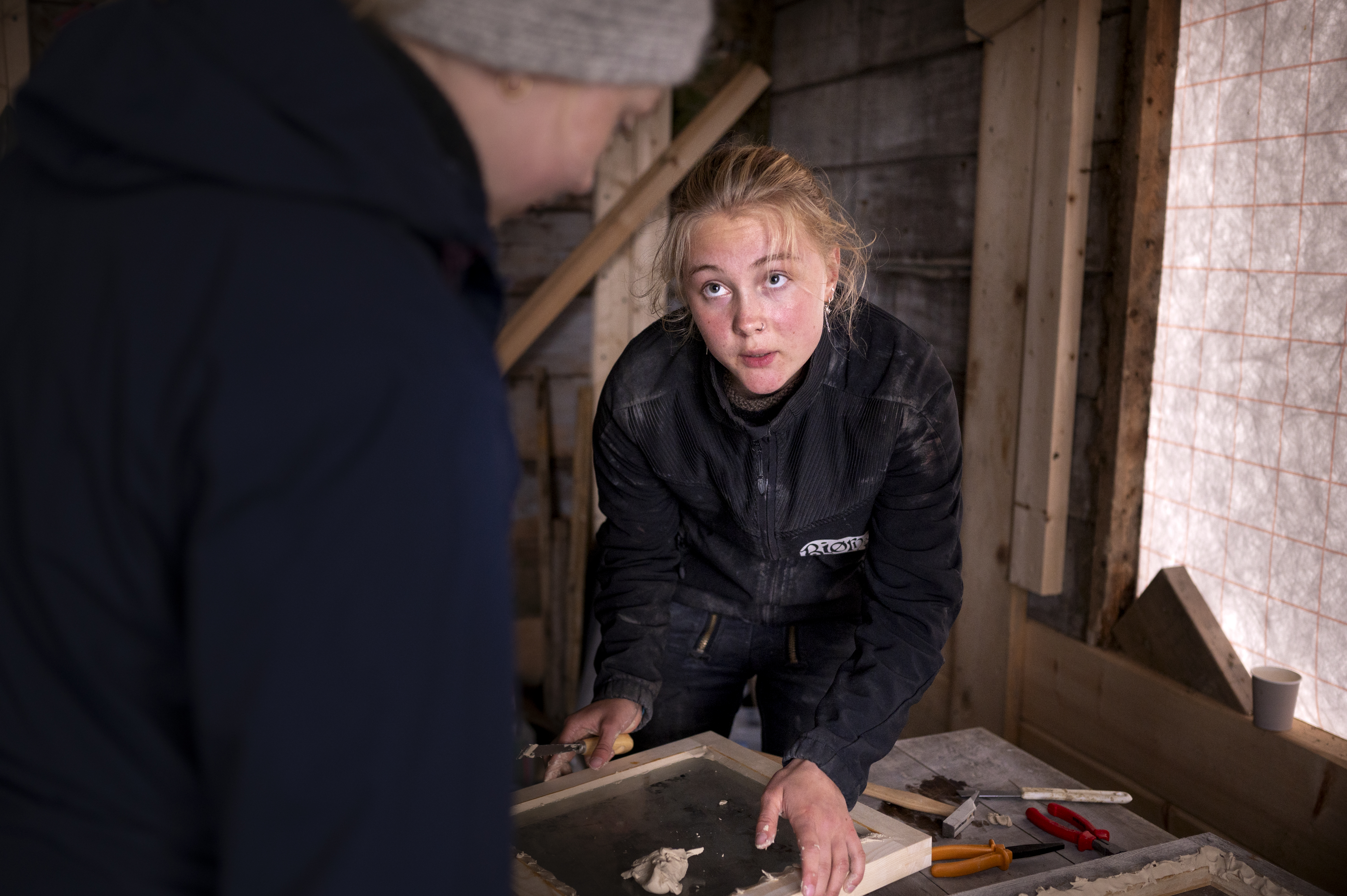 Det samme gjelder for denne workshopen: Jentene har fått prøve seg på å lage kopier og istandsette de originale vinduene. De har også fått lære om materialvalg og å kitte de gamle vinduene på nytt og sette i glass. Etter hvert vil de nye vinduene bli laget i ulike materialer, slik at vi kan få en bedre forståelse for hvilke materialer som tåler naturkreftene ute i havgapet.