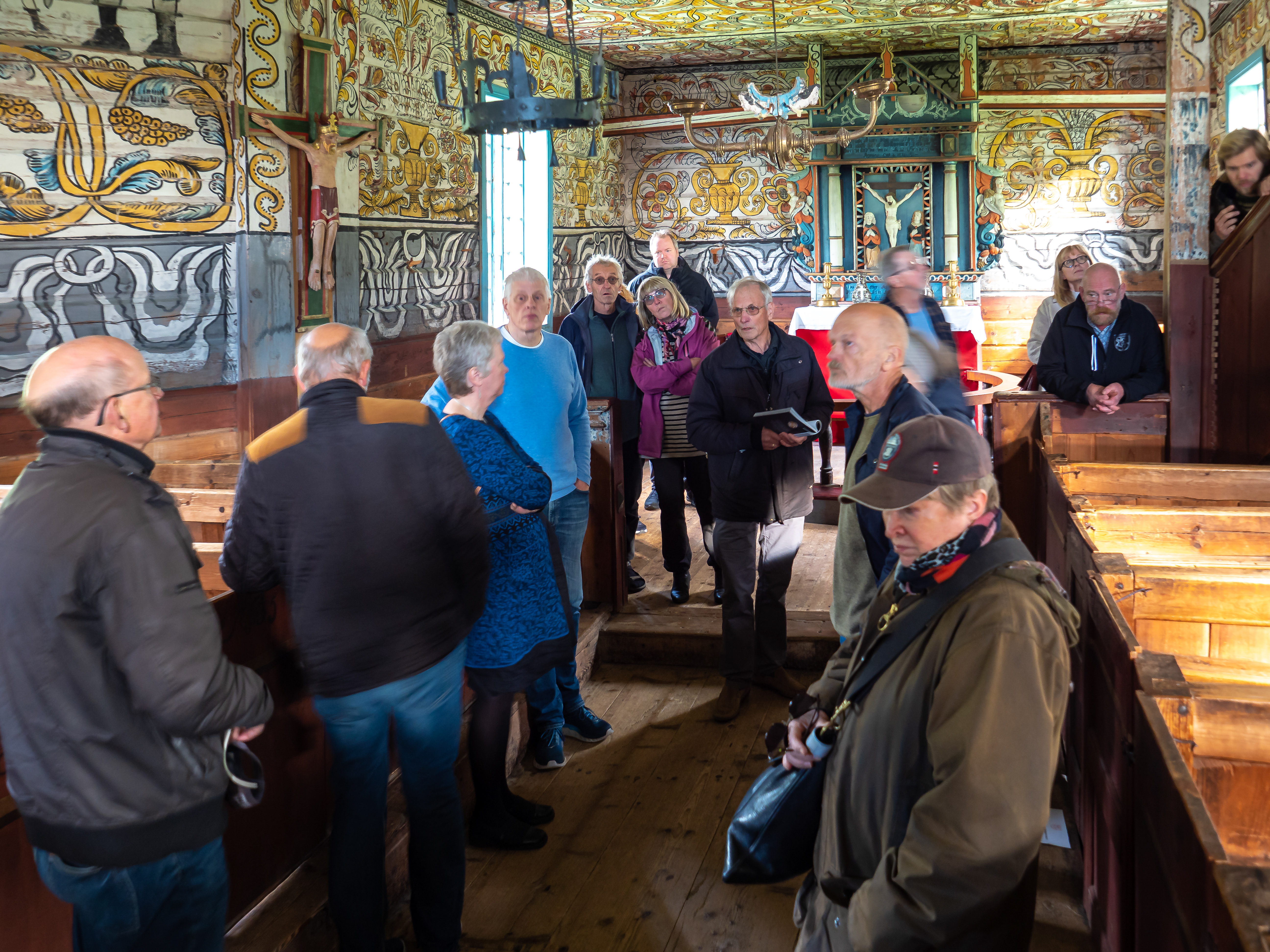 – Det overveldande interiøret. Dekoren er så komplisert på mange måtar, men samstundes veldig enkel. Ein kan jo berre tenkje seg korleis det var å kome fra kvardagsstrevet som bonde, frå eit hardt liv med lite til overs, og så kome inn i dette fargerike interiøret med forteljingar på veggane, seiar Judith.