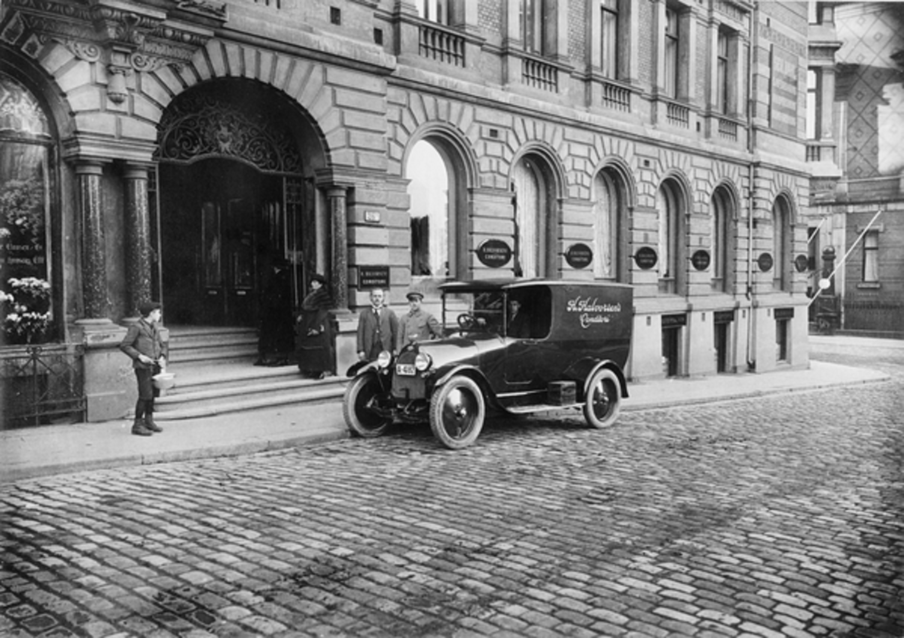 Selv om det er litt usikkert om Halvorsens Conditori startet på østsiden av bygget og så flyttet til nåværende lokasjon, går man ut ifra at det var på hjørnet i første etasje at skredderen fra Kråkstad, Hans Halvorsen, åpnet dørene til sitt konditori den 25. november samme år som bygården stod ferdig.