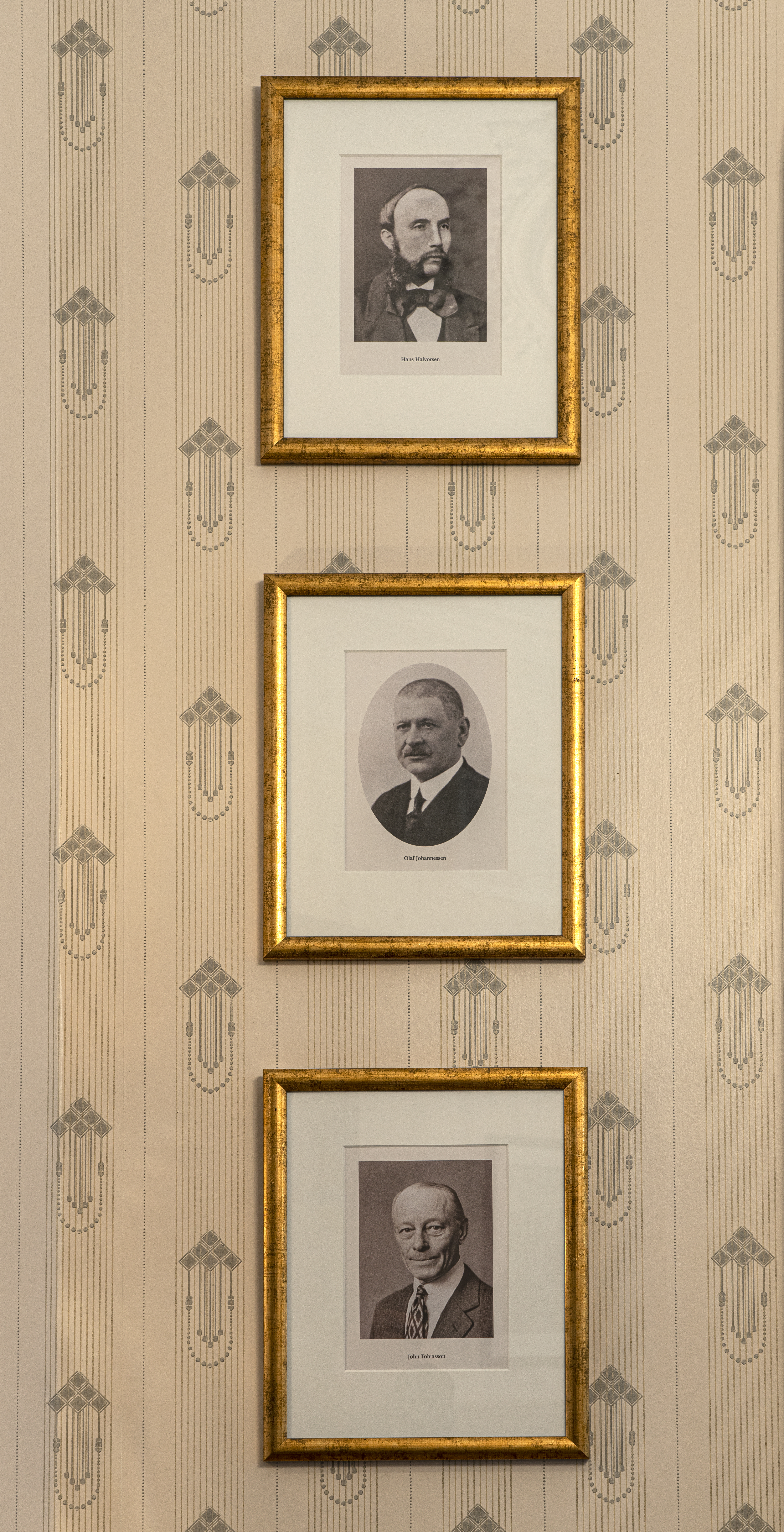 Her, i det lange, rettvinklede lokalet, fikk Halvorsen plass til opptil 150 gjester. Rommet ble delt inn i tre avdelinger, adskilt med gedigne sideportér og tungeformede kapper med pomponger. Ett nydelig ådret eikegulv i en rødbrun farge ble møblert med marmorbord, wienerstoler og røde plysjlenestoler med messinghåndtak på toppen av ryggstøet.
