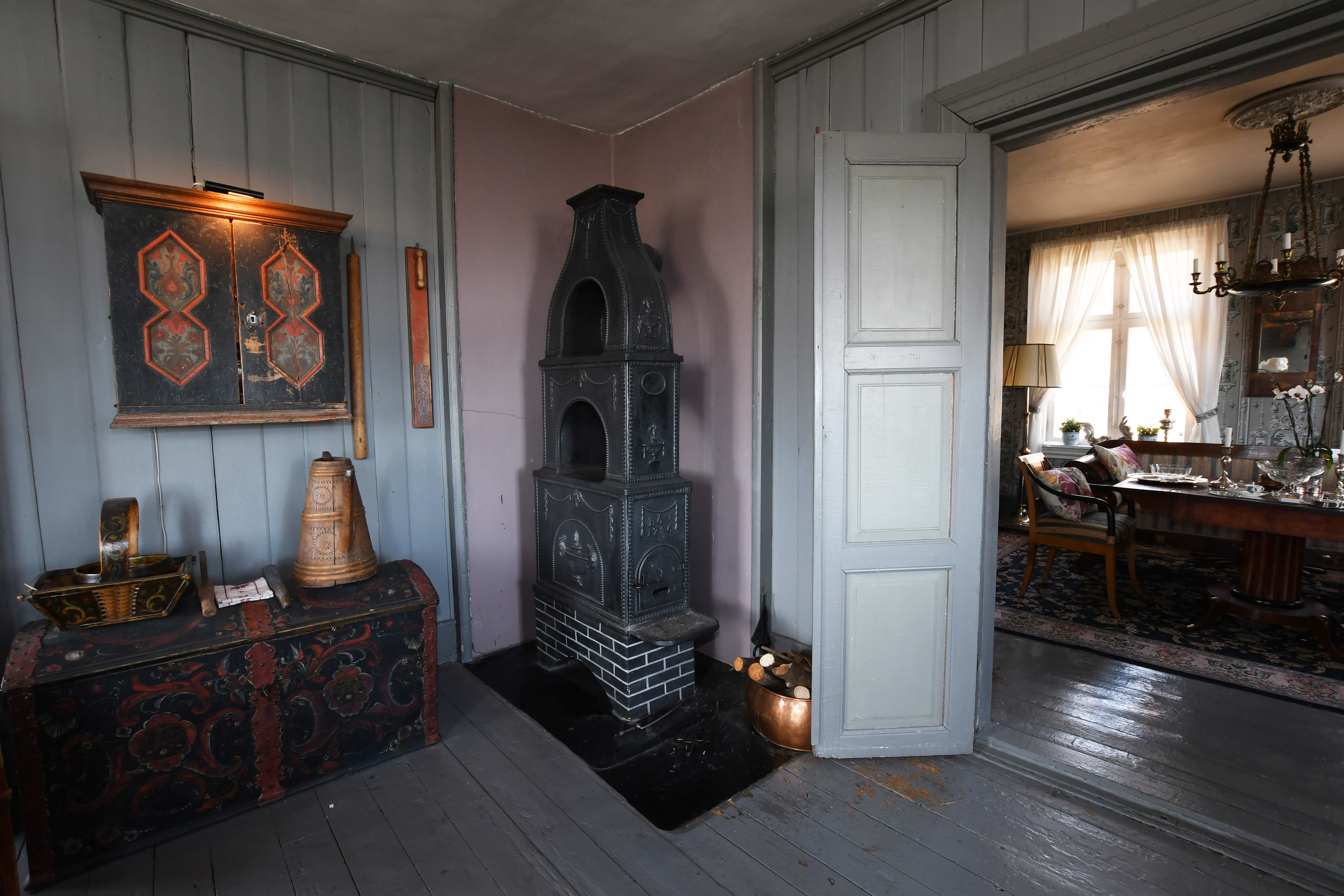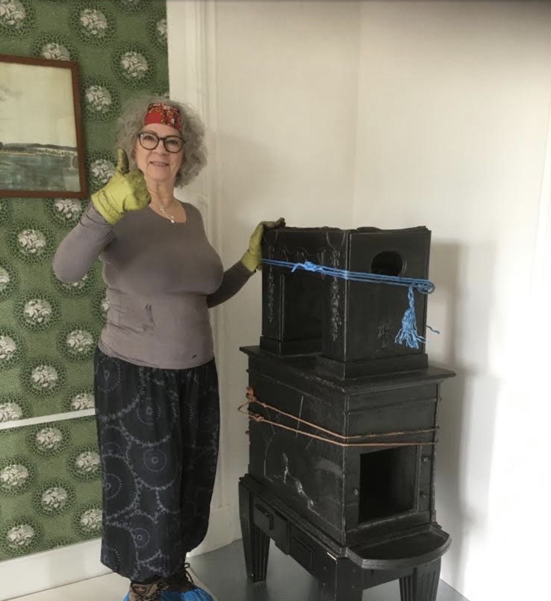 Hun har tatt ut mer enn 100 vindusglass, skrapt rammene av malmfuru, lagt på linoljekitt og stiftet vindusglassene på og fuget linoljekitt utenpå. Hun har vært fagkonsulent innendørs og fått stuene til å harmonere.