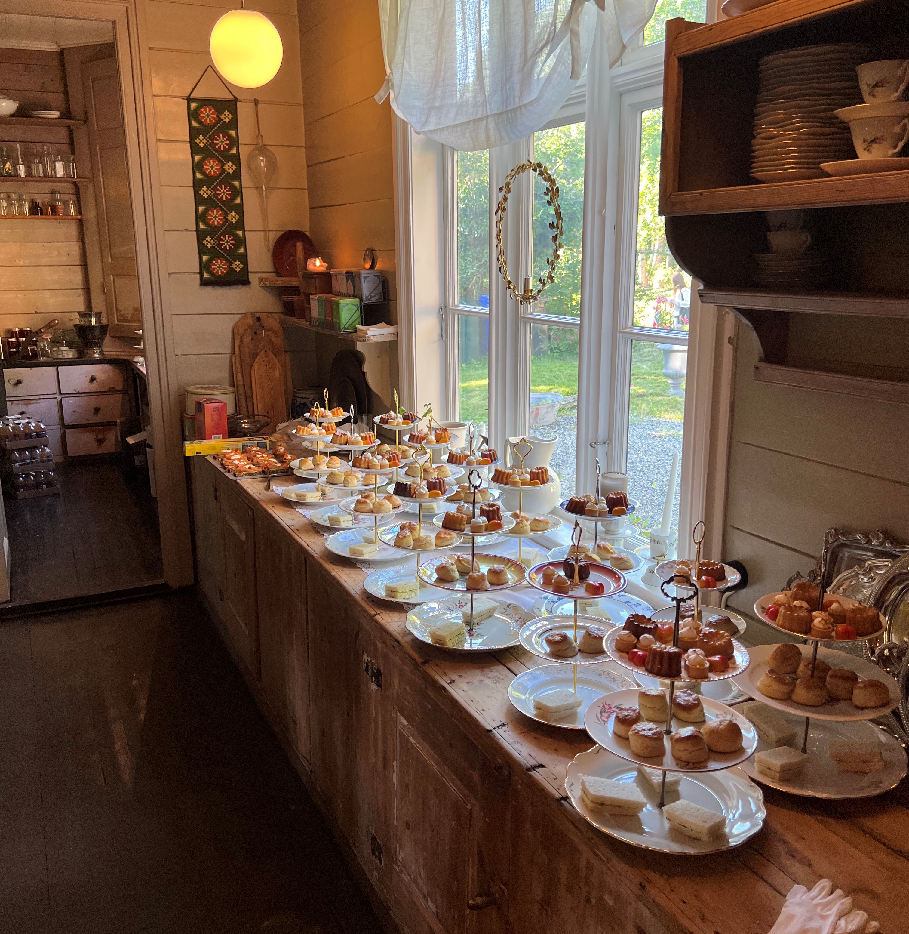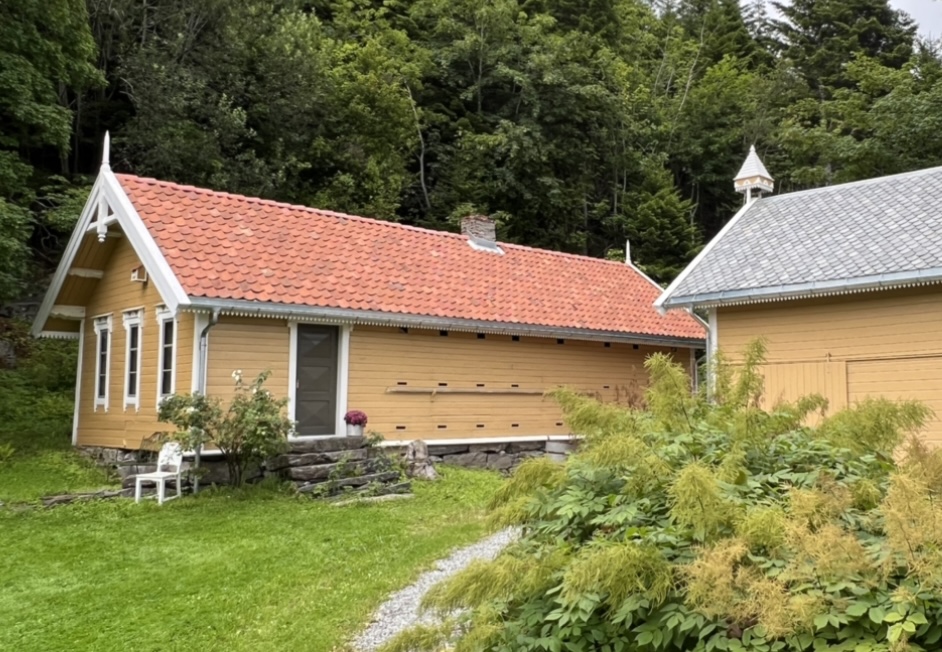For tre år sidan starta vi også med restaurering av stabbur og eldhus, også her har vi fått støtte frå Kulturminnefondet. No er tak, vindu, ornamenter og klokketårn, restaurert, vøla og noko produsert nytt. Her har «Bak dei blå dørene» stått for arbeidet og snekkargleda har fått utfalde seg i det nye klokketårnet som kimer så fint med den gamle historiske klokka inni.