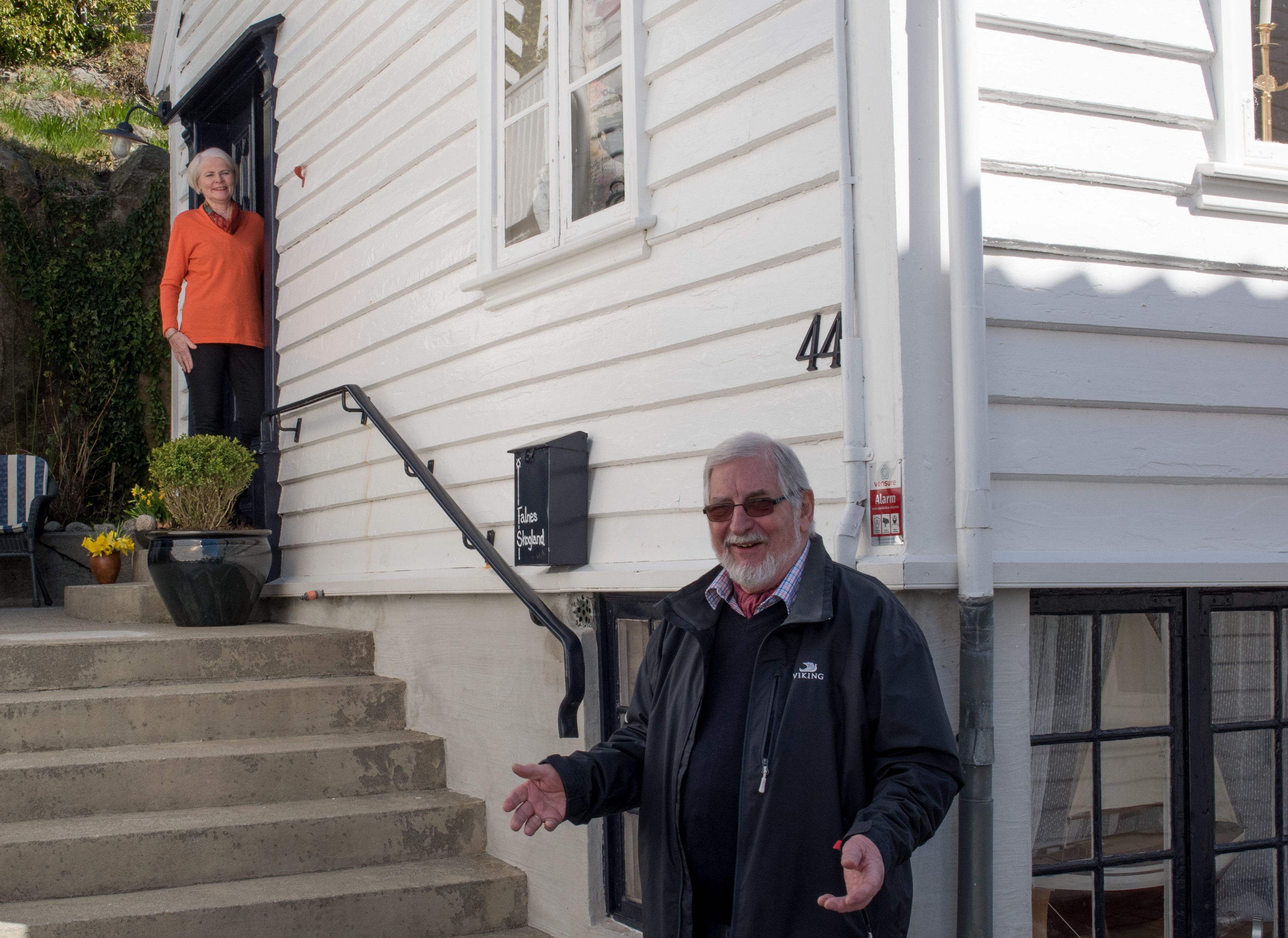 Dagfinn Skogland og Anne Helene Falnes Skogland er pensjonister og bor i Bergen, men er ofte i Skudeneshavn. De har overtatt huset i Søragadå fra Anne Helenes besteforeldre. Her drev oldefaren kobbersmie med opptil 16 ansatte i kjelleren. De laget blant annet metalldeler til tåkelurene som ble produsert av O.C. Hansens Tåkelurfabrikk ved dampskipskaien. På loftet kunne fiskerne leie husvære i sesongen. Opptil 20 mann lå «flolagt» på flatseng til 25 øre natta.
