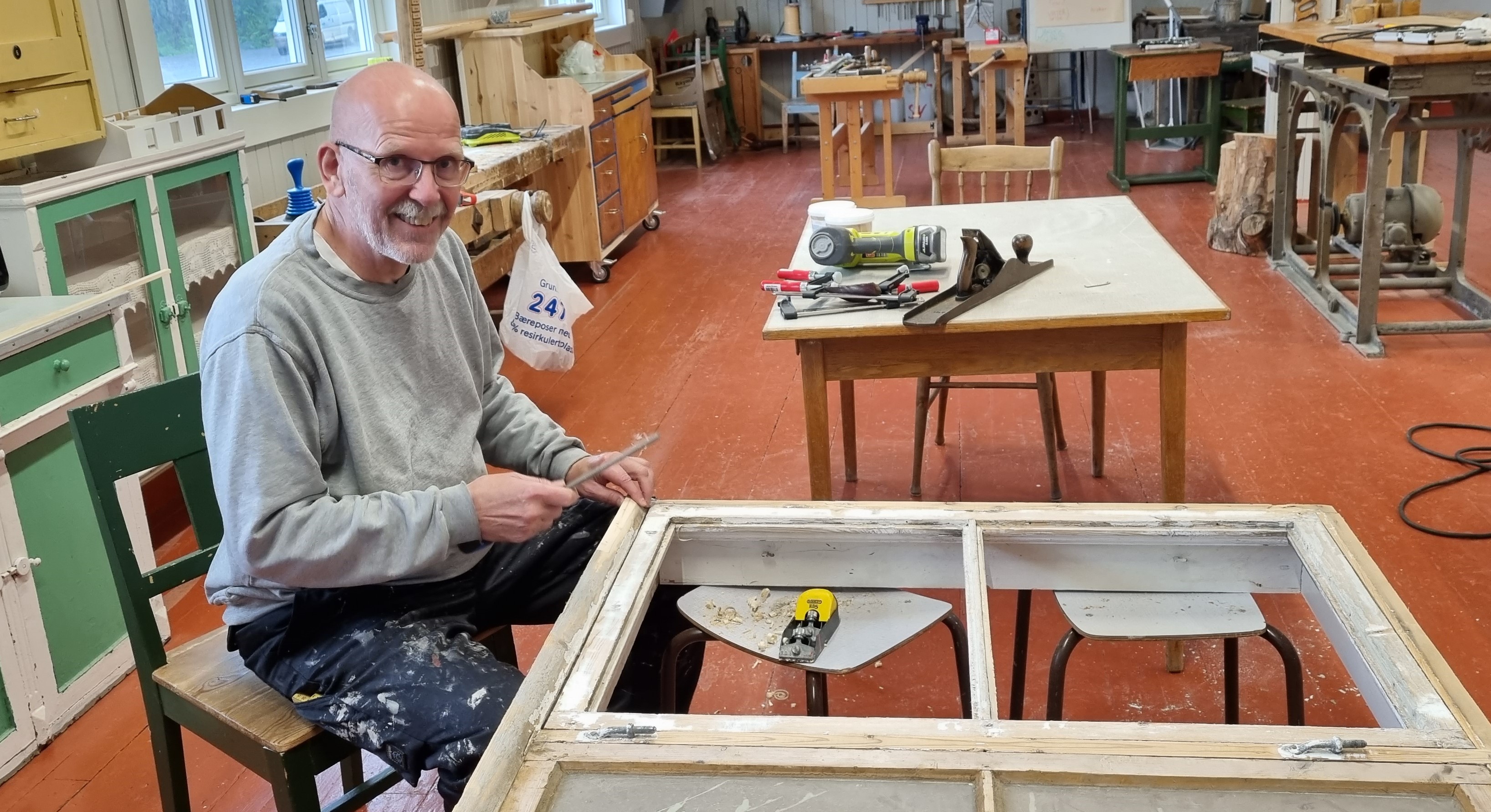 I dag er han pensjonist, men eventyret med sløydsalen begynte da han fortsatt jobbet som kommunal vaktmester. Å lese av strøm- og vannmålere i byggene var en av hans mange oppgaver, og det førte til at han så regelmessig innom sløydsalen.