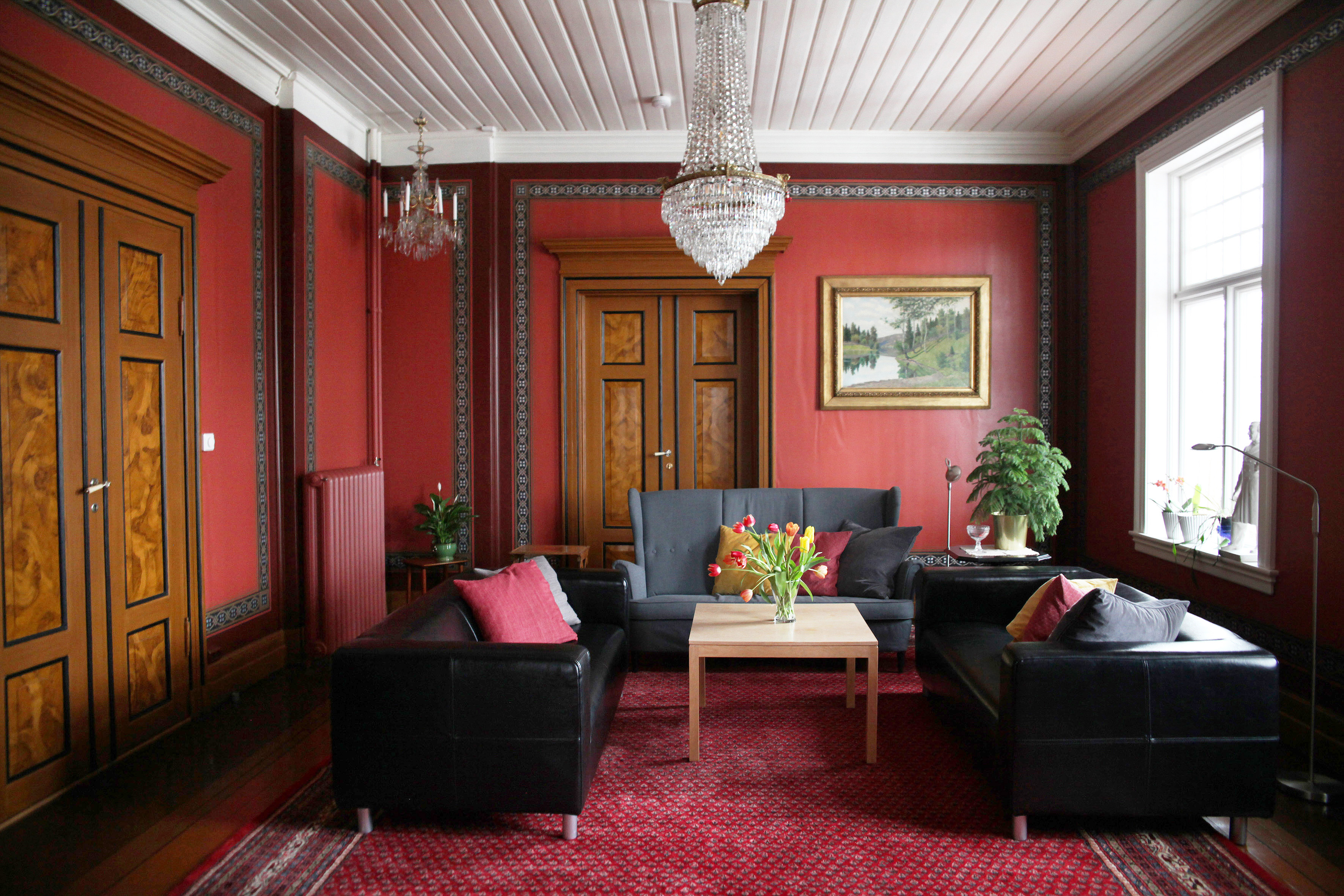 - Da vi satte oss ned, kjente vi på hvor deilig det er å være her. Vi bruker stua på en helt annen måte nå enn vi gjorde før. Dette skal være et rom midt i huset uten TV der vi kan sette oss ned og prate. Det er helt klart at dette rommet var ment å ha denne typen dekor. Tilbakeføringa betyr så mye for stemningen, som igjen betyr mye for hele huset. Det er ganske påfallende og interessant, forteller Olstad.