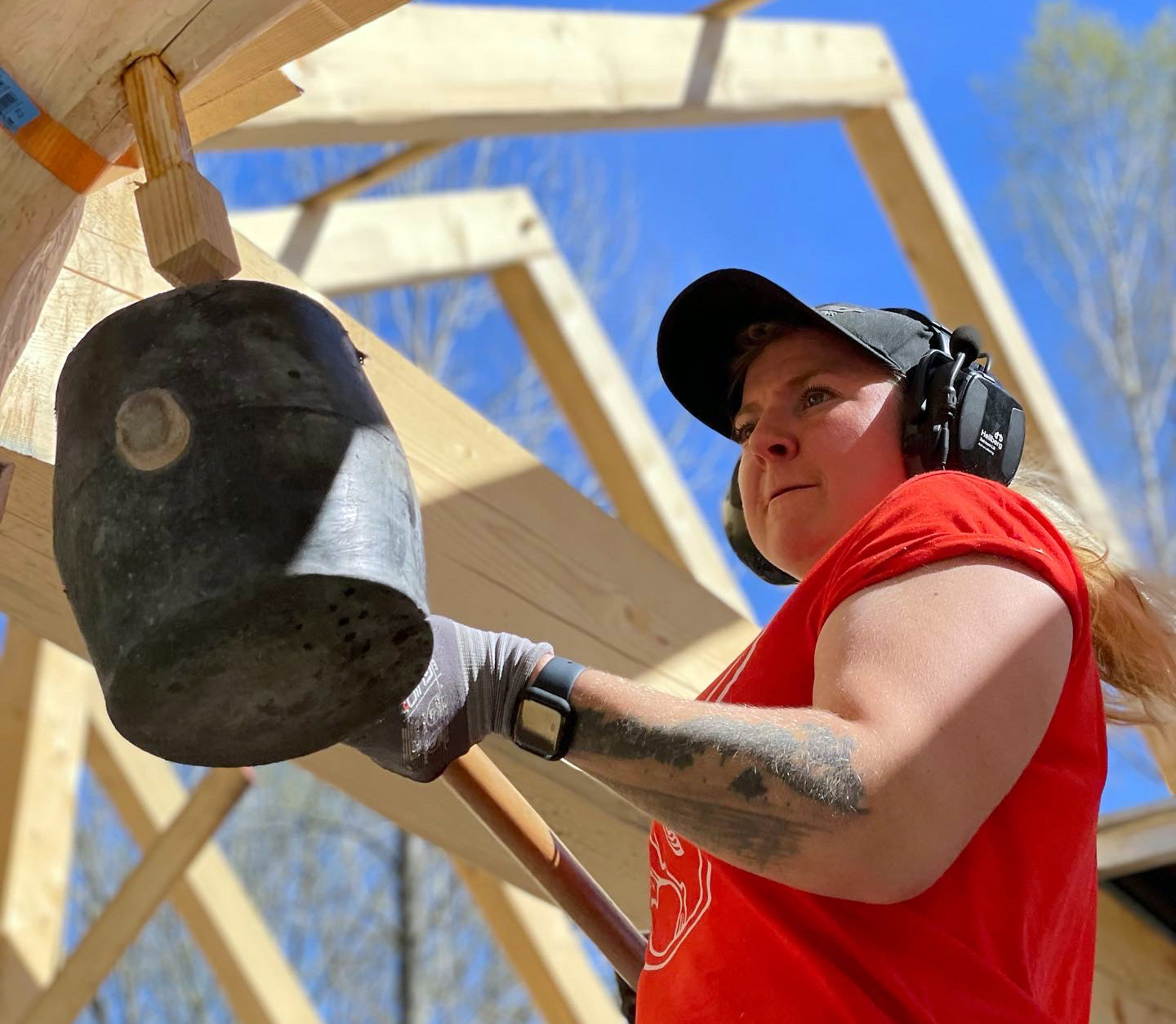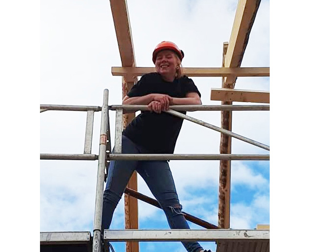 Rebekka begynte som voksenlærling i tømrerfaget i 2021 og satset på drømmen om å bli håndverker. Da hun senere deltok på jenteworkshop i regi av Fortidsminneforeningen fikk hun øynene opp for noe enda mer spennende innen faget. HUn har også vært med på kurs i rotknær og grindverkskonstruksjon i Tvedestrand og laftekurs på Abborhøgda.