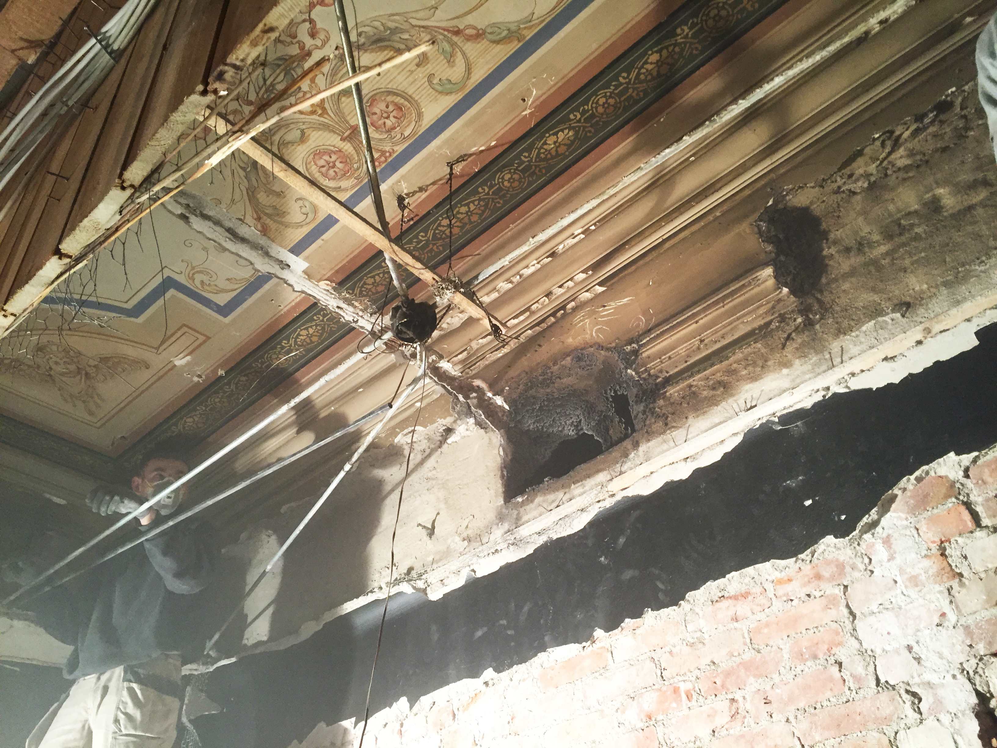 -Vi hadde valget mellom å restaurere de nyoppdagede taket slik det kanskje så ut da det var nytt, eller gjøre det mørkere, for å matche det opprinnelige taket i den andre stuen. Vi valgte det første.