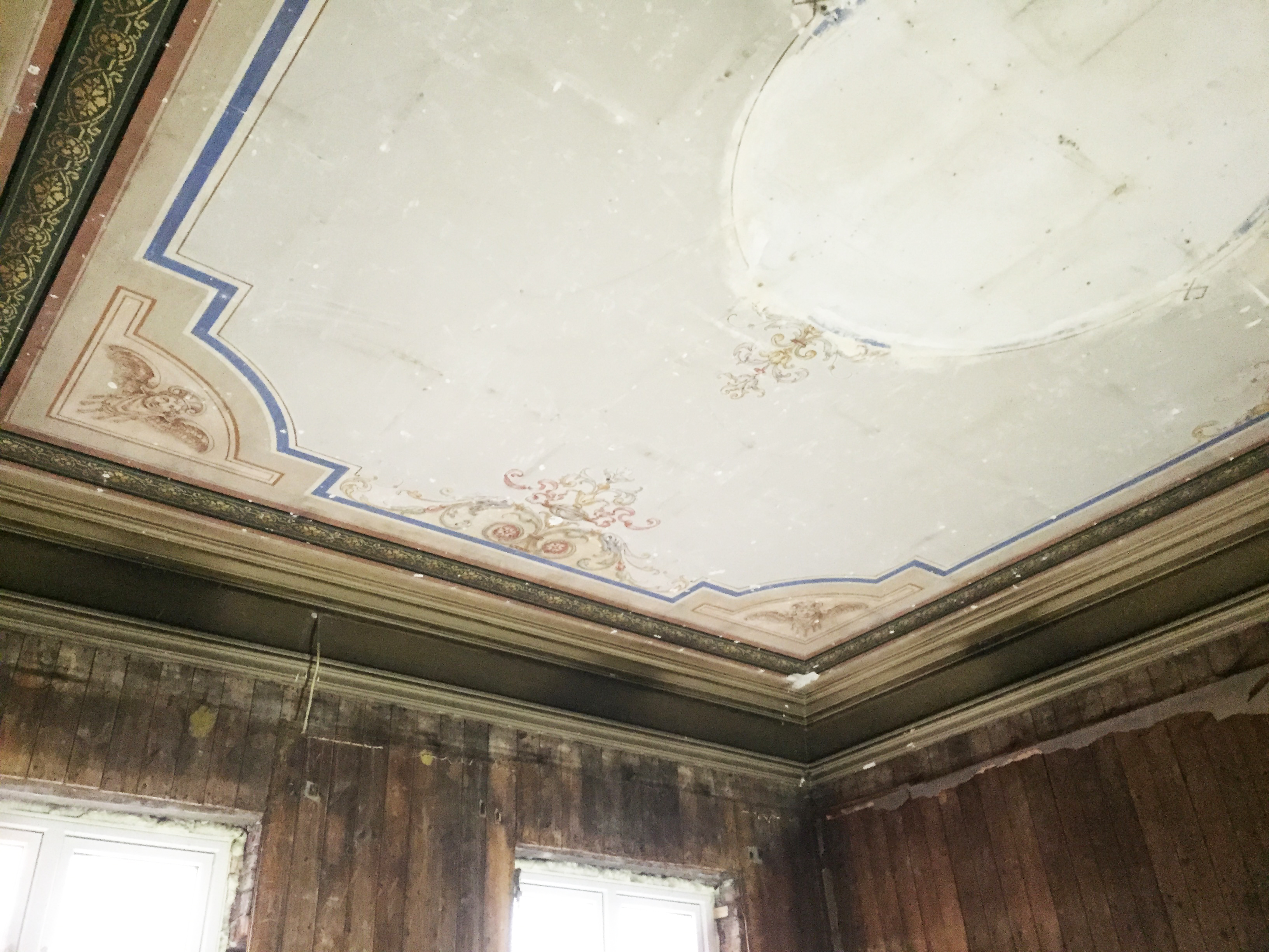 -For da jeg gjorde det, kom det litt gullmaling frem. Da måtte vi restaurere dette lille taket også. Det kan fortsatt skjule seg flere skatter under taket her i huset, men mer enn dette kunne vi ikke tillate oss i denne omgang.
