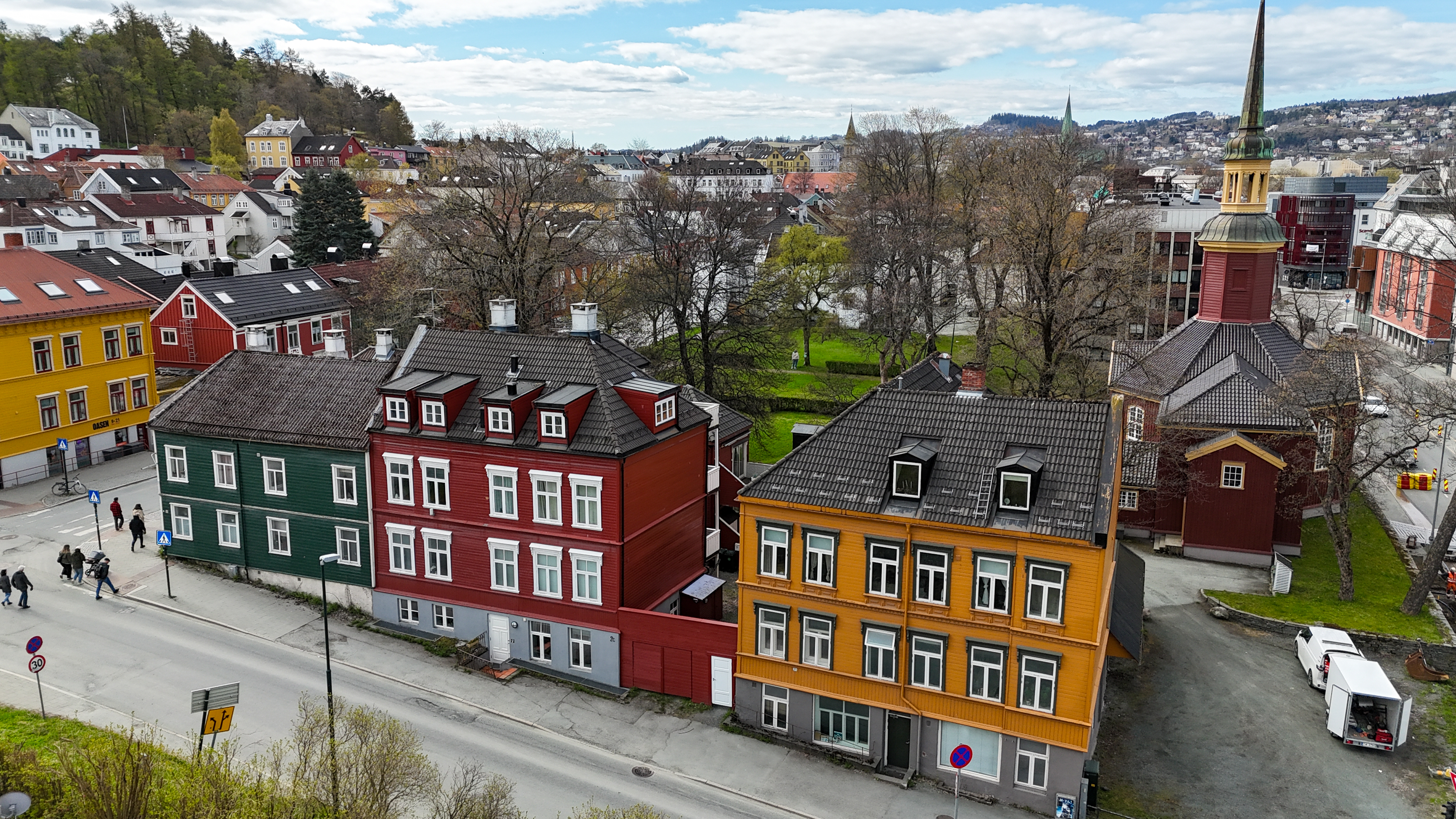 På denne vårfylte dagen i april i trehusbebyggelsen på Møllenberg er det satt for rebusløype, laftesett og gullegg i takrennene på bakkenivå. Når det skinner i Trondheim, skinner det på ordentlig. Nabolagsfesten i bydelen har mye å by på for både barn og huseiere. I dag skal besøkende få en vennlig påminnelse om at en god start for vedlikehold av gamle hus kan likeså starte på taket.