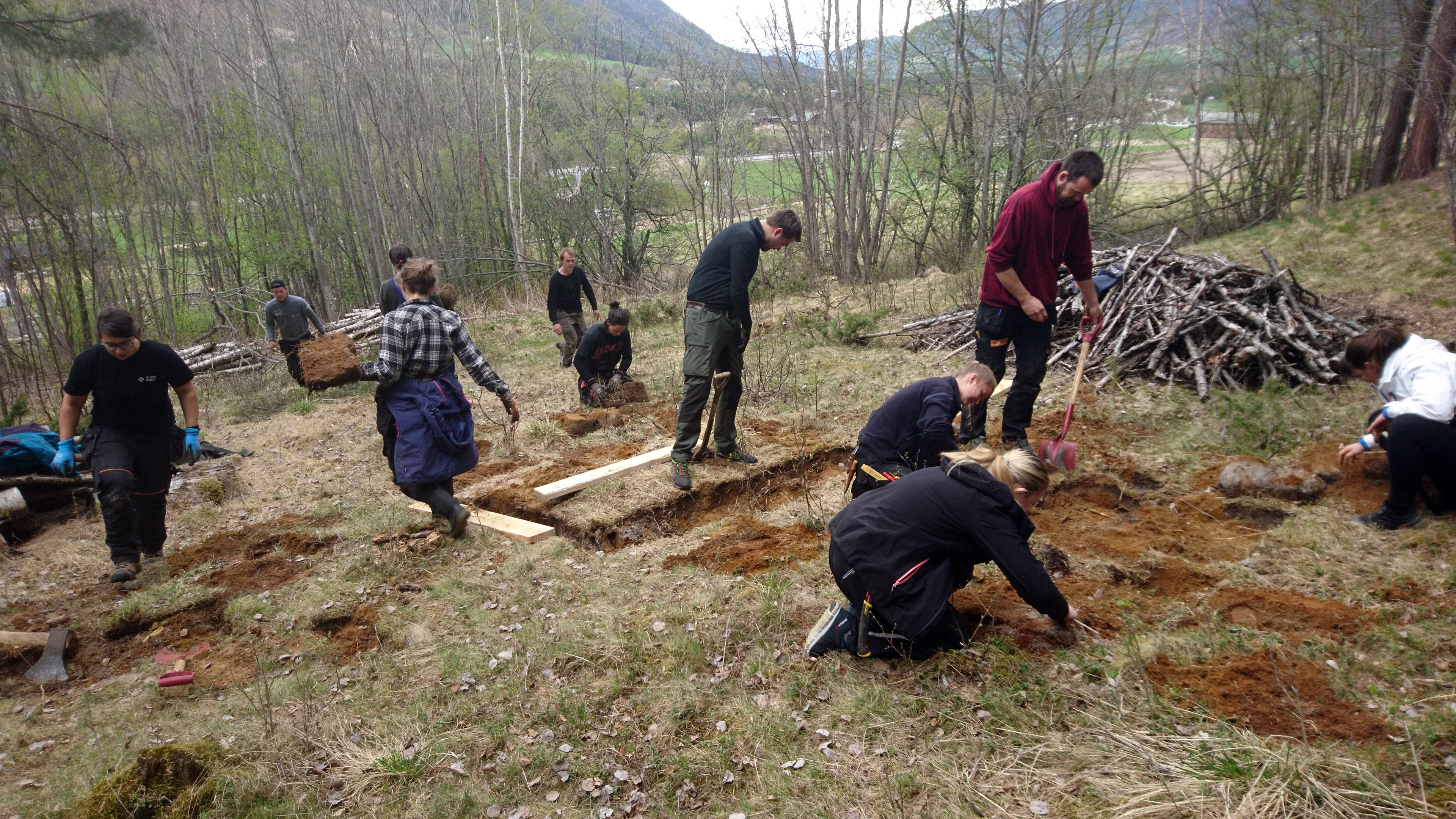 Deretter ble deltakerne delt i to grupper; den ene dro ut i skogen for å finne god kvabb og torv, den andre besøkte Dovre skifer for å se og lære om steinindustrien.