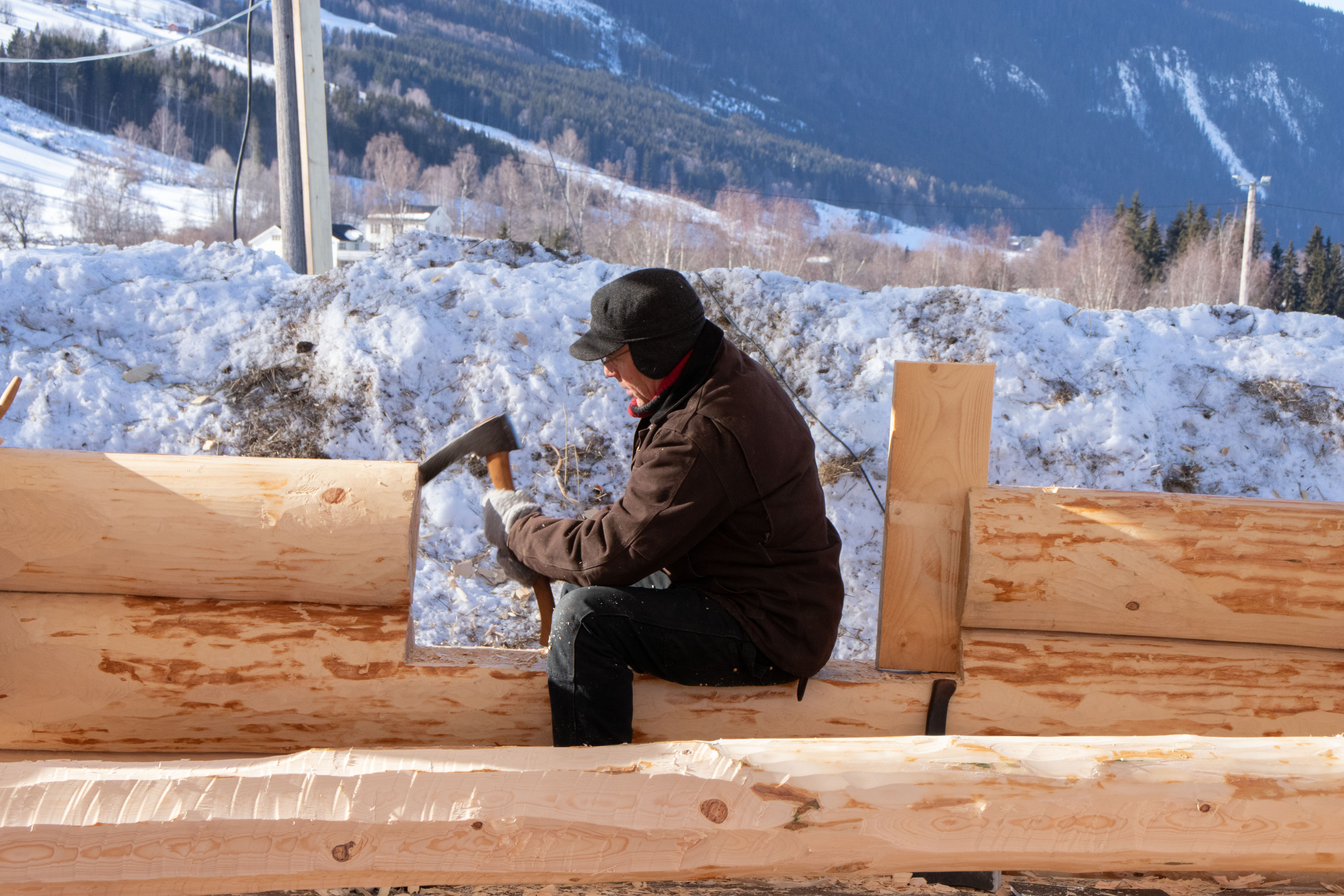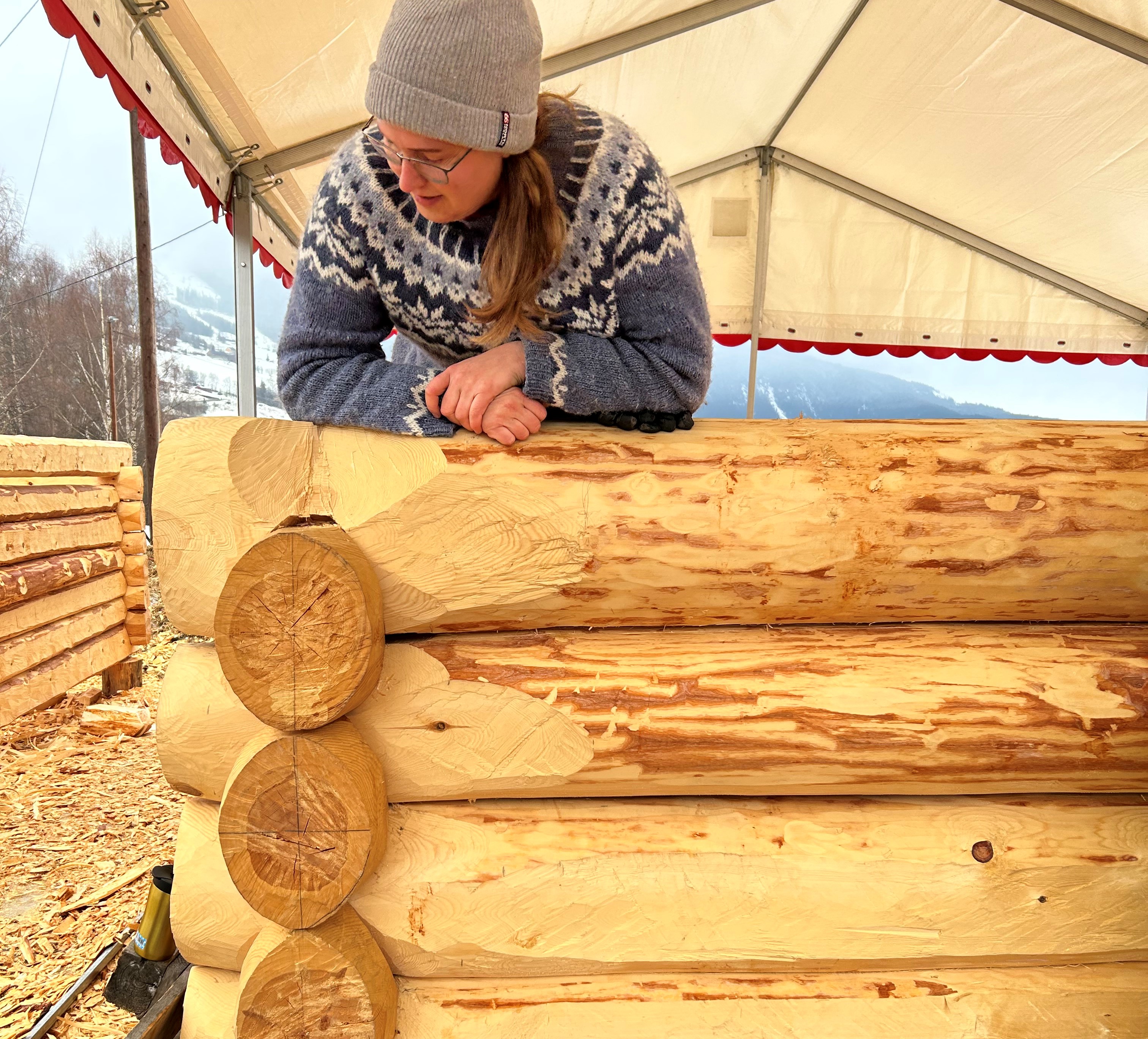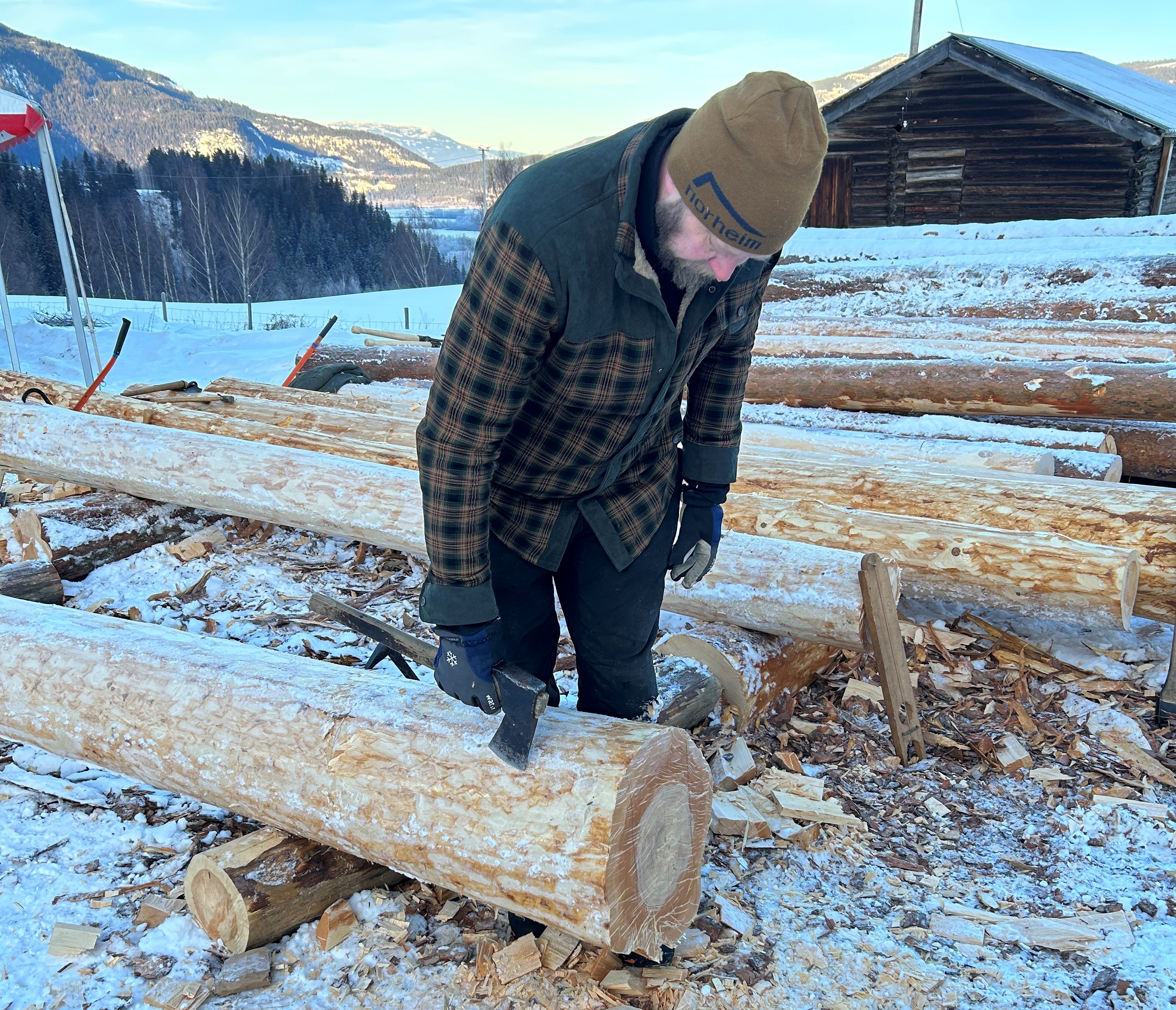 - På Island har vi ikke det samme referansegrunnlaget som dere har i Norge, og det har satt oss i en vanskelig situasjon når det kommer til å ta vare på bygningskulturen vår for fremtiden, forklarer Snædis Traustadóttir før hun fortsetter å merke en tømmerstokk før den hugges på plass i veggen.