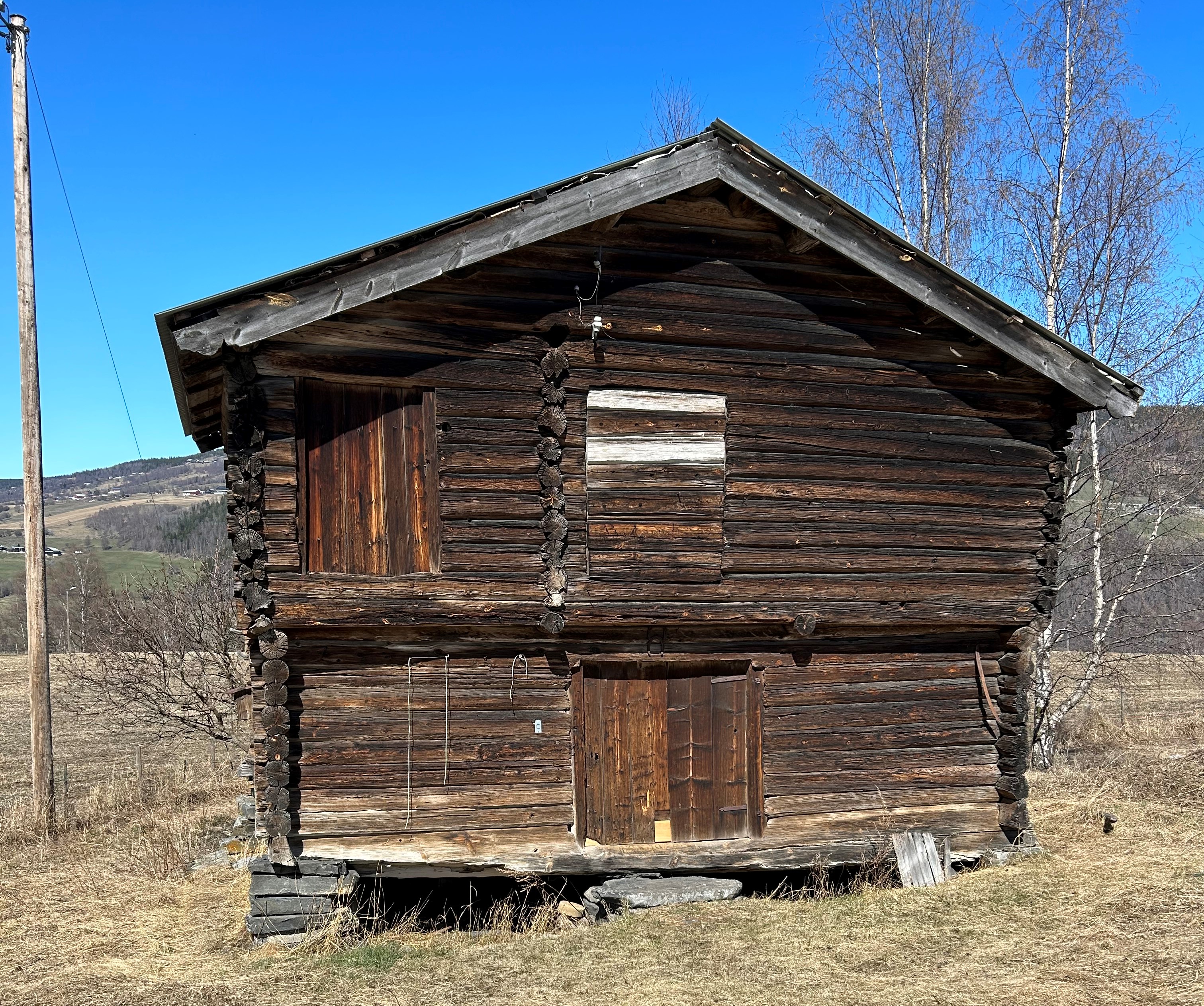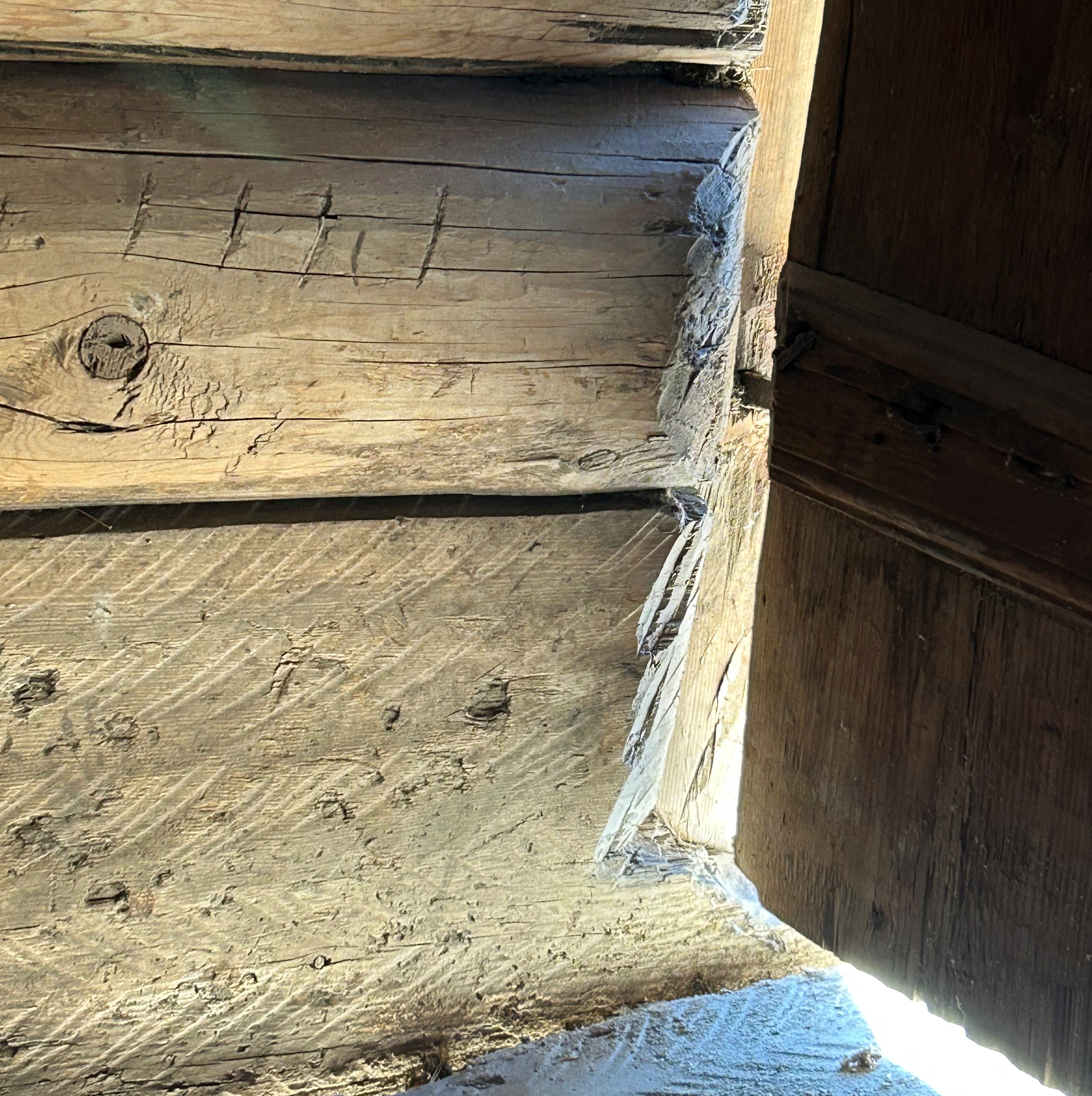- Bygningen har trapesformede sviller, de er spretteteljet og i mye større dimensjon enn resten av tømmeret i veggene. Gulvet i første etasje er også spretteteljet på to sider, og en finner også spor av dette på veggstokkene. Disse er imidlertid pjålet over igjen etter tilforming med øks, forklarer han.