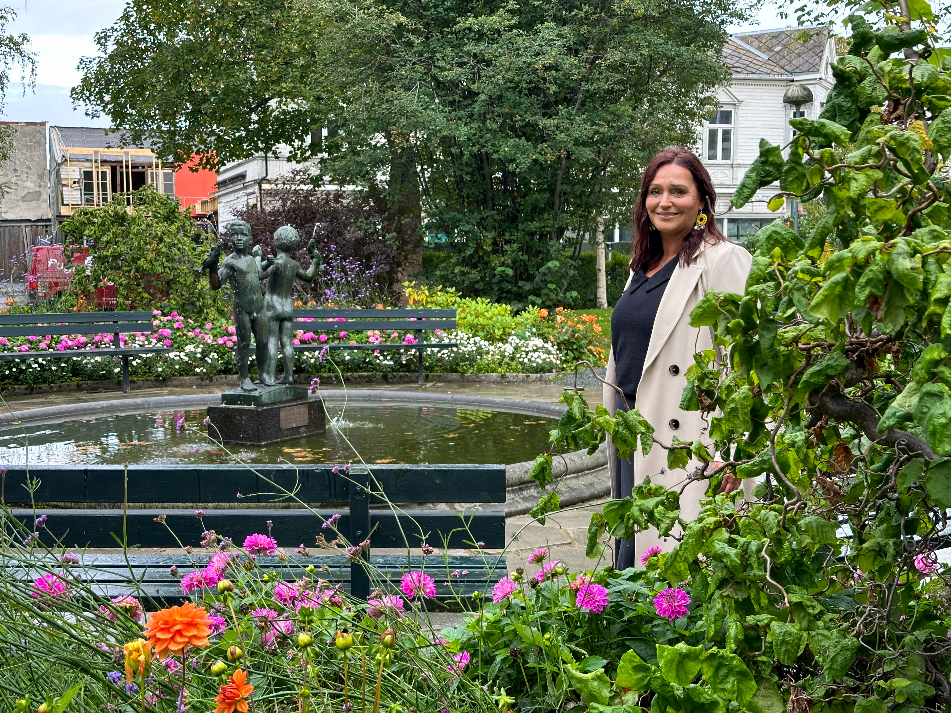 Mot slutten av rusleturen i byen stopper jeg og byantikvar Tove Nordgaard i Øvre Park som nå har blitt omdøpt til Sejersteds Park. I Forslaget til Forvaltningsplan Levanger kulturmiljøplan skrives det at Øvre Park har i stor grad det samme uttrykket i dag som den hadde rundt forrige århundreskifte, i 1900. På denne dagen er det fortsatt farge på blomstereng og grønnvekst rundt fontenen. – Den historiske parkaksen er byens hjerte. En kvalitet til byrommet, sier hun.
