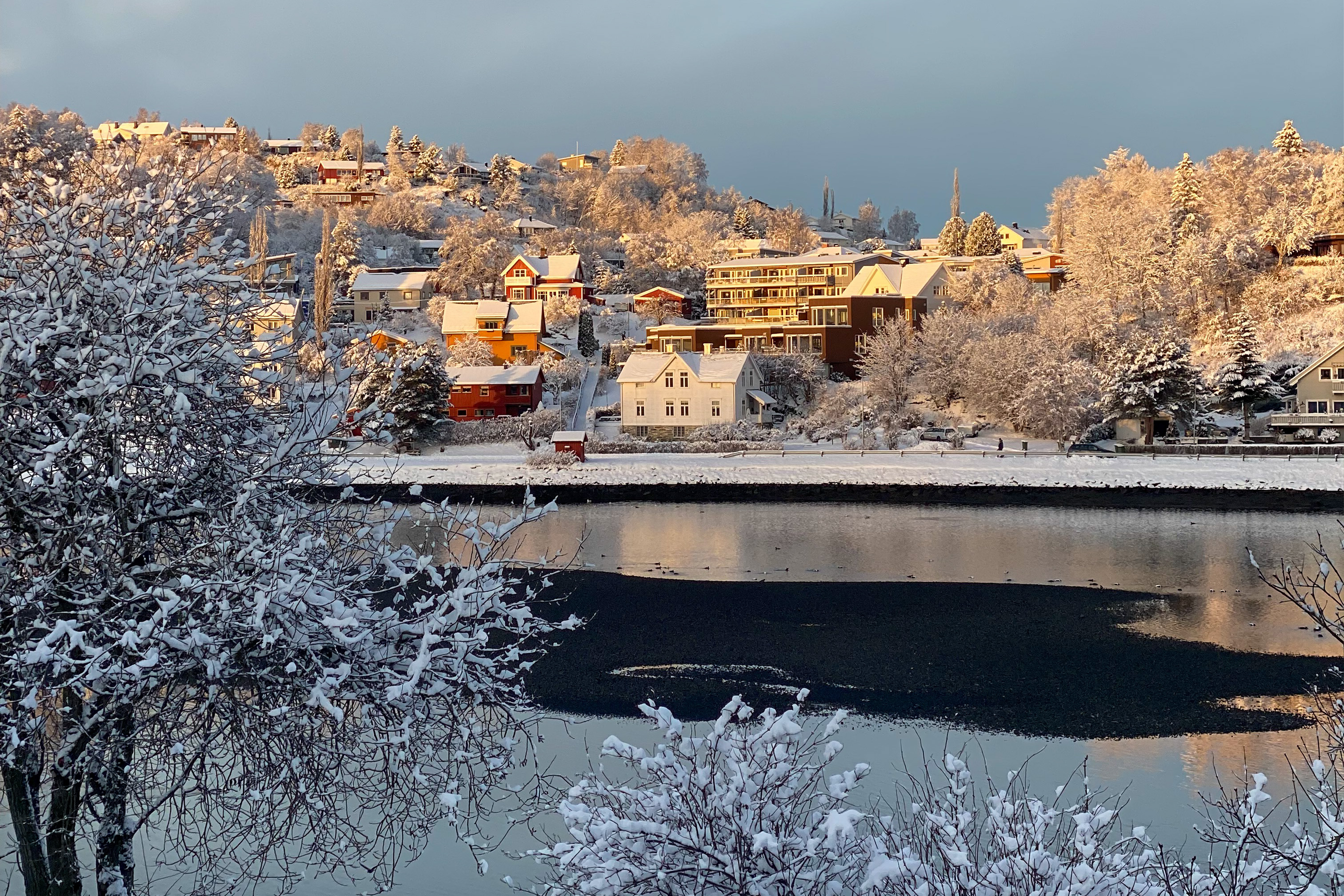 Kanskje det er høstferie. Du setter deg i bilen fra sør i landet med mål om å komme hjem til langt opp i nord. E6 er den strakeste veien som de synger i Trøndelag og jeg sitter i baksetet som veiviser. Vi passerte papirfabrikken Norske Skog på Skogn for tre minutter siden. Fra langt hold fungerer steinkirken Alstadhaug fra 1140-tallet som et fyrtårn og vinker oss inn med en utstrakt arm. Trondheimsfjorden har fulgt oss et godt stykke, men nå kan vi se konturene av damp langs fjordbassenget Eidsbotn. Hus og skog på motsatt side av vannet danner en god ramme om den inviterende trehusbyen.