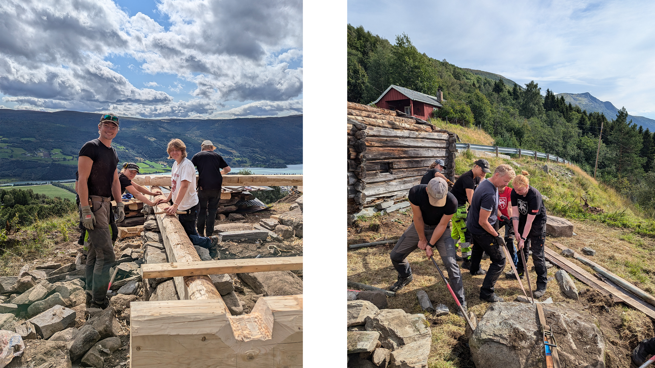 Våningshuset som skal gjenreises våren 2025, har vært et samarbeid mellom Dovrehåndverkssenter og håndverkere fra Steinar Modal med kurs i både lafting og planlagte kurs i taktekking med torv og never.