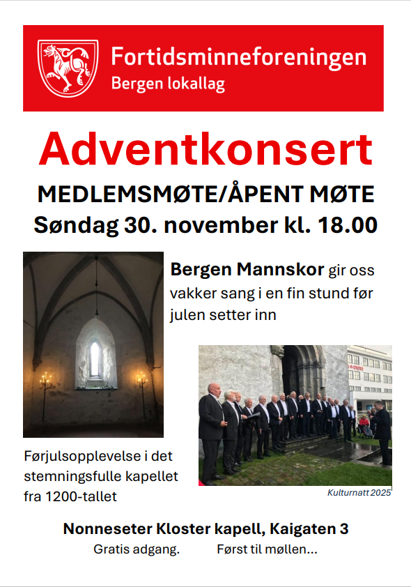 Bergen lokallag inviterer til adventskonsert