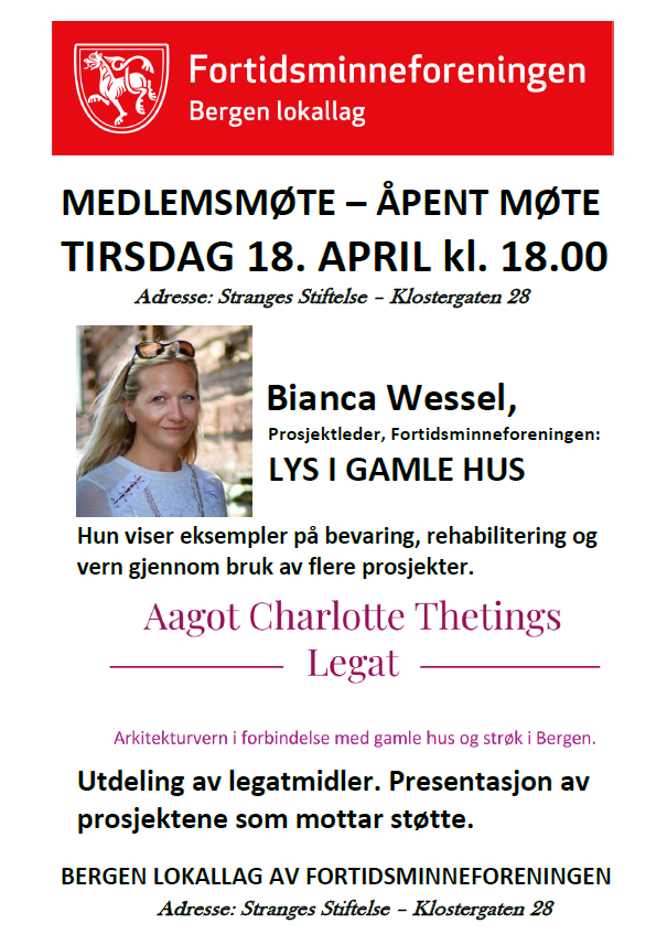 Bergen lokallag inviterer til medlemsmøte med foredrag og utdeling av legatmidler.
