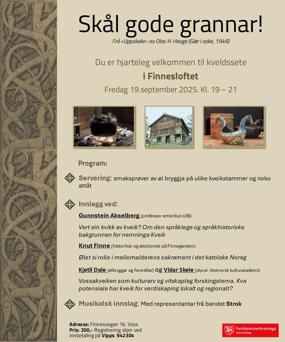Voss lokallag inviterer deg til kveldssete i Finnesloftet i Mellomalderveka 2025