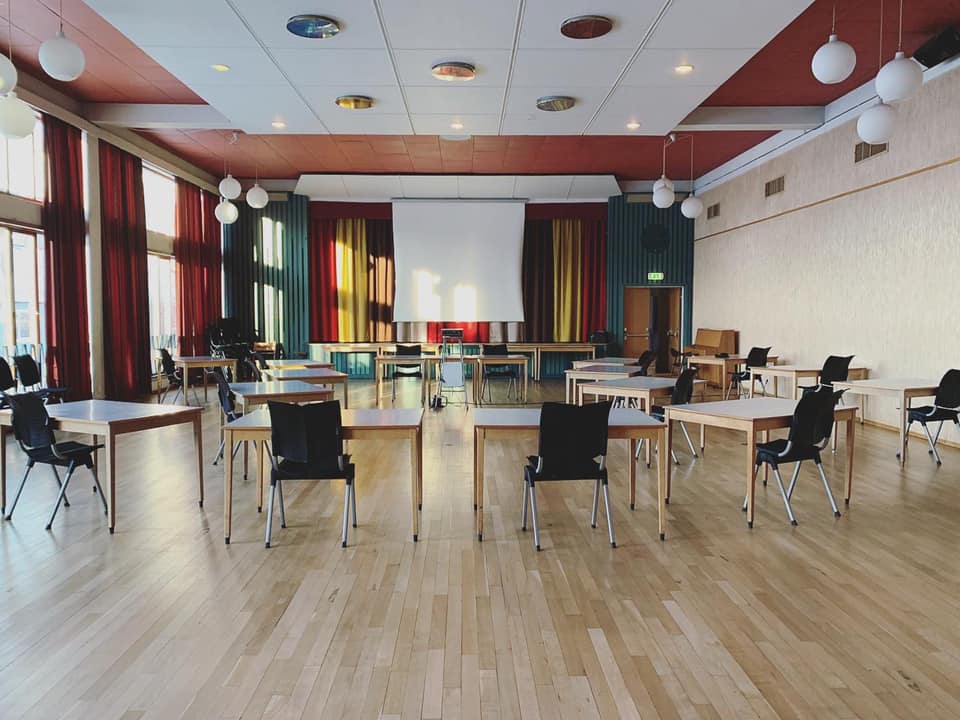 Da samfunnshuset sto ferdig tidlig på 1960-tallet, i all hovedsak finansiert av ekstra fagforeningskontingent (altså et hus bygget av folket for folket), inneholdt det foruten kontorer, kommunestyresal og formannskapssal også bibliotek, svømmehall, kafe, en stor kino, to mindre saler og en stor festsal.